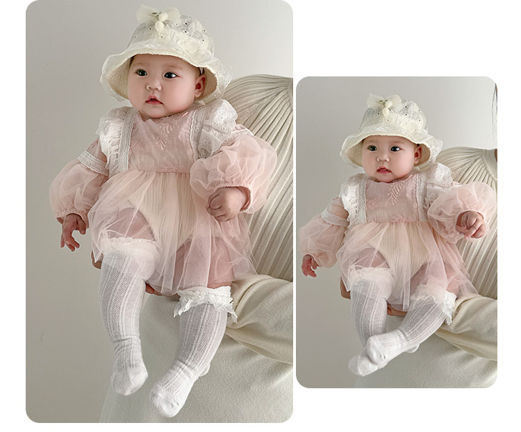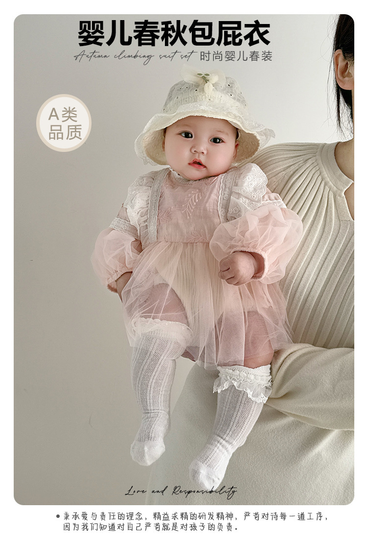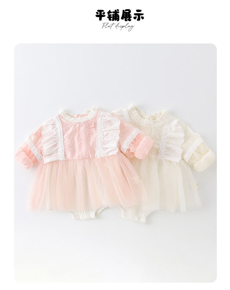 Yuyue 아기 소녀 가을 점프 슈트 신생아 아기 옷 봄, 가을 옷 귀여운 가운 달콤한 거즈 스커트