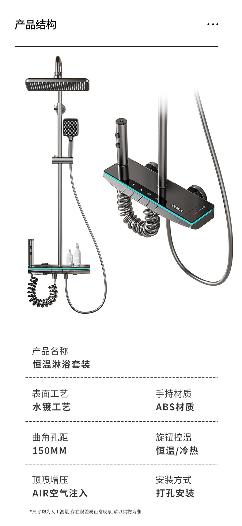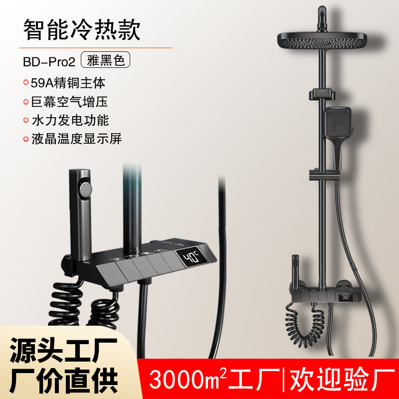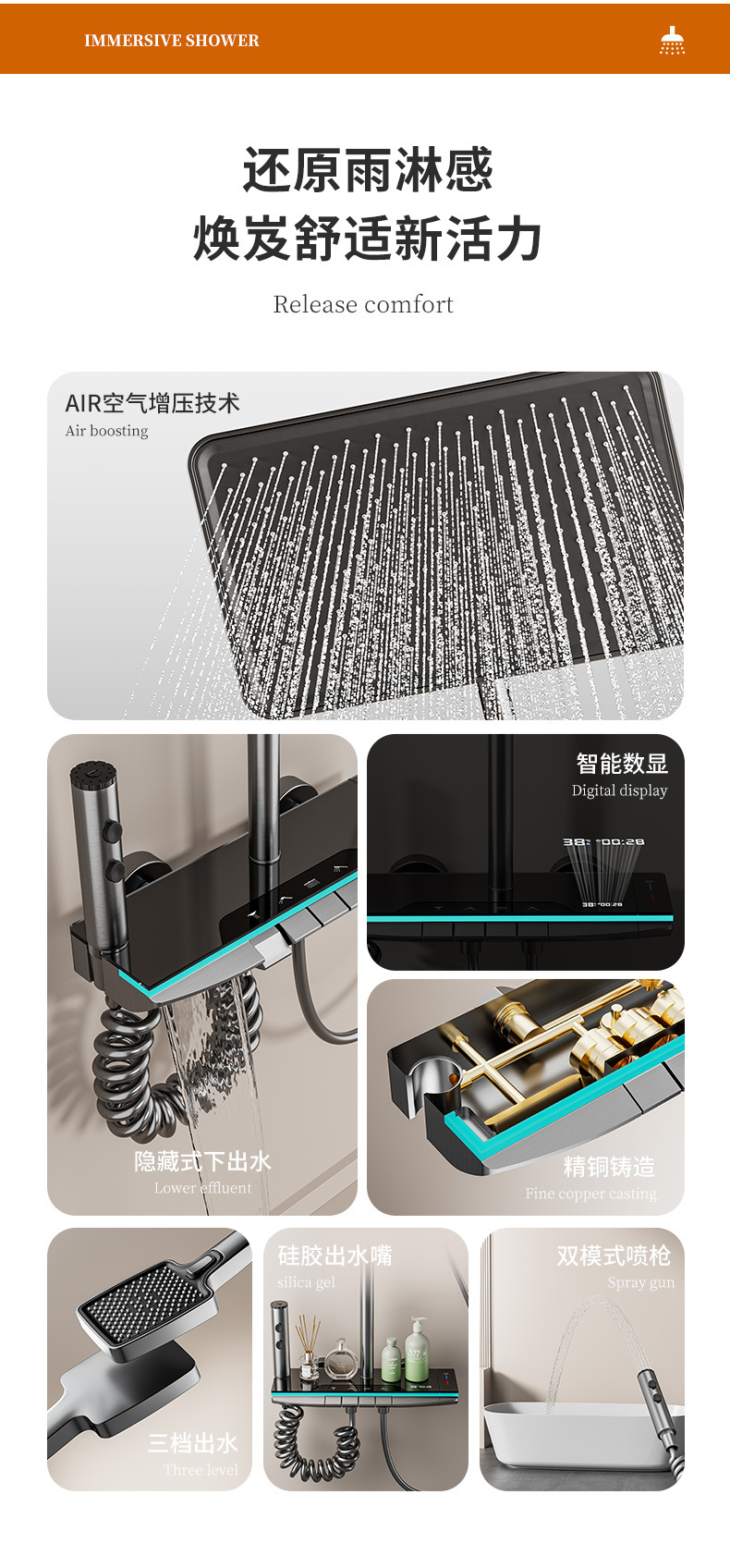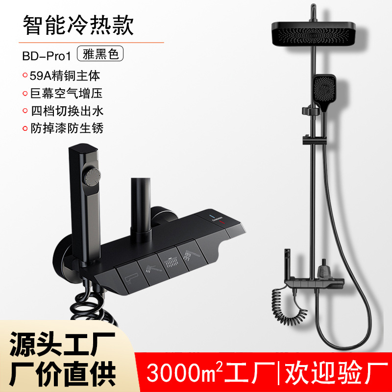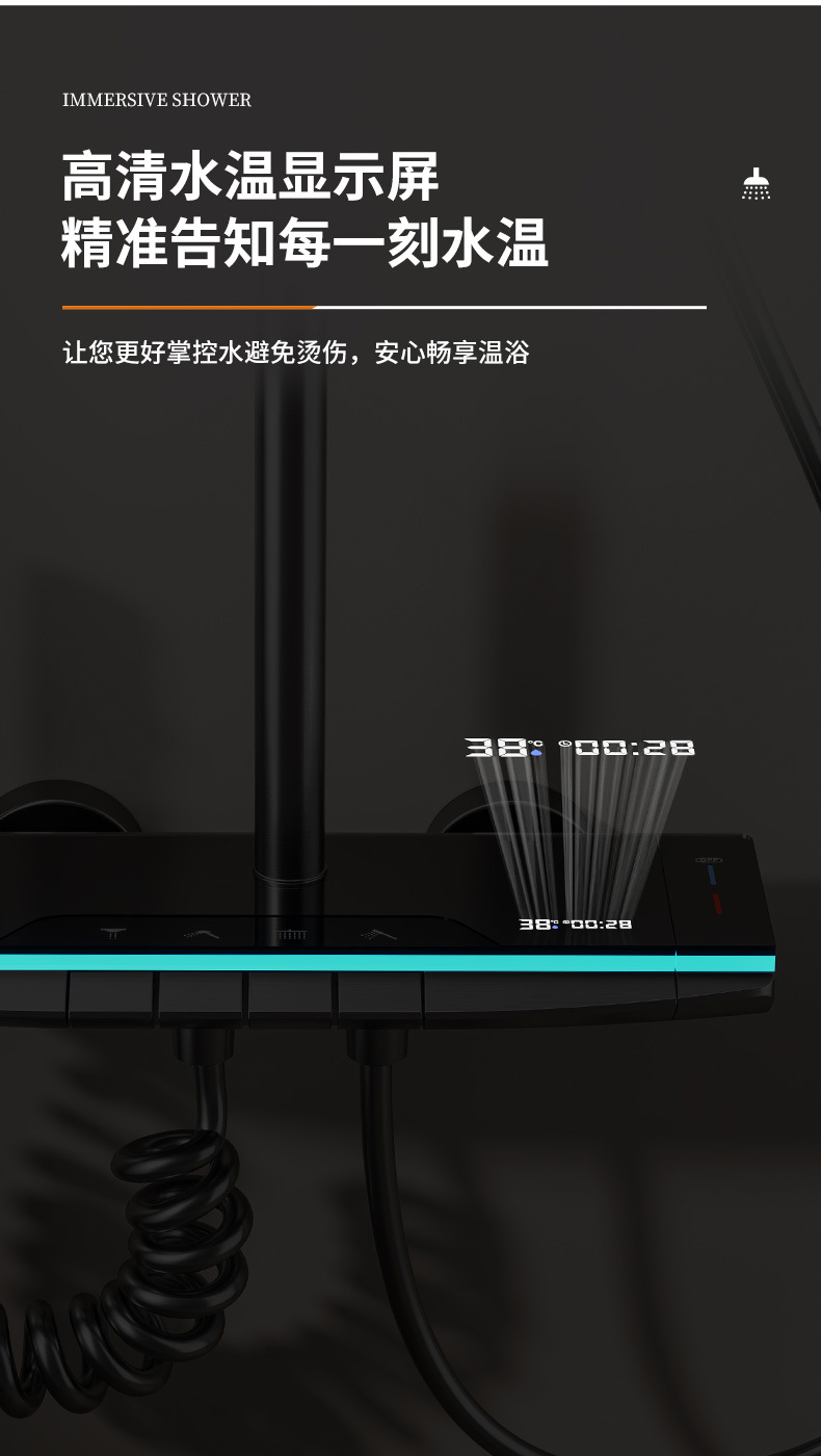 • 우아한 블랙 디지털 디스플레이 항공모함 4단 샤워기 - 구리 본체