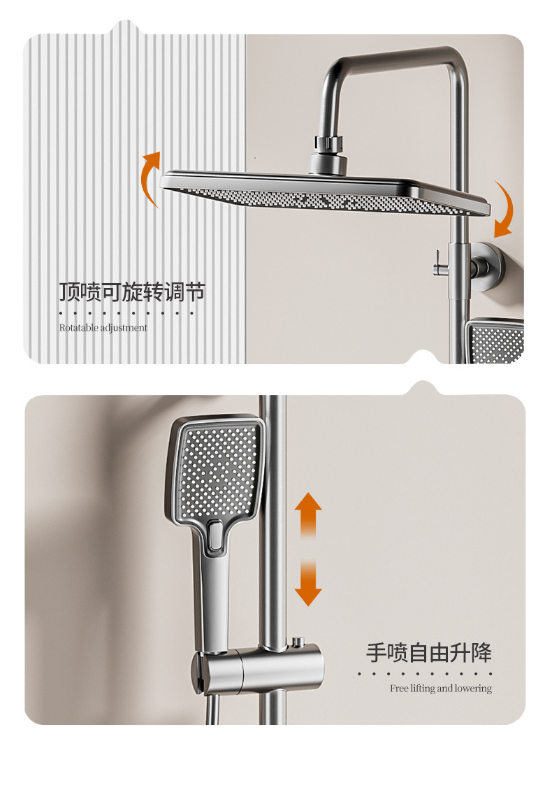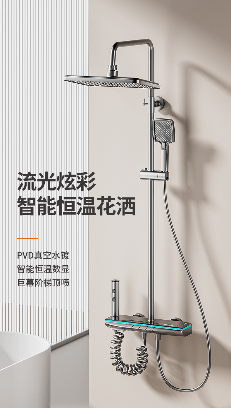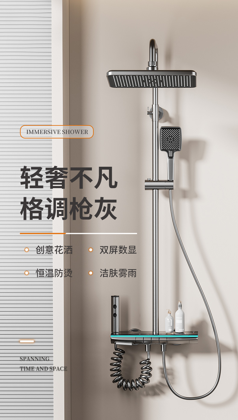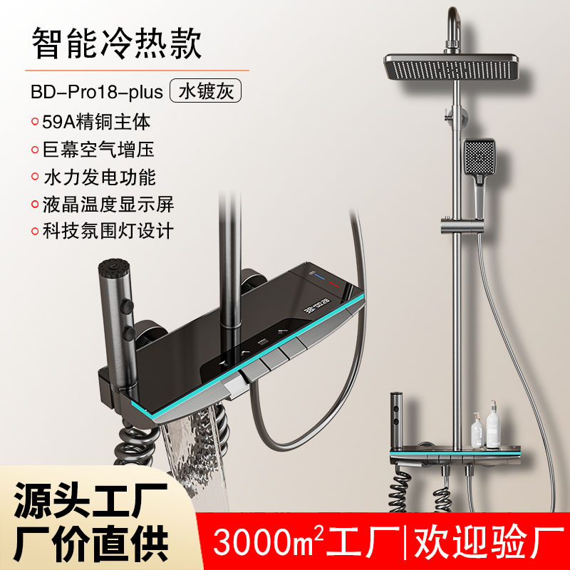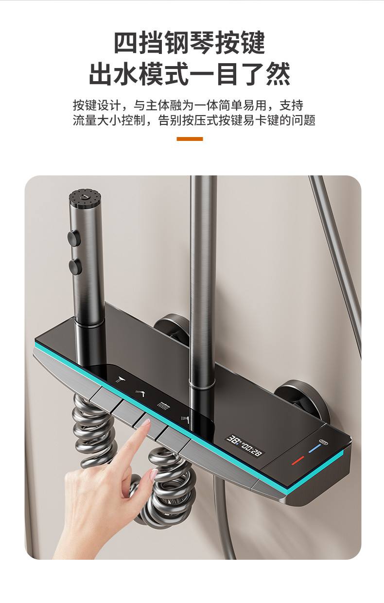 • 수성 도금 회색 주변 조명 디지털 디스플레이 항공모함 4단 샤워기 - 구리 본체