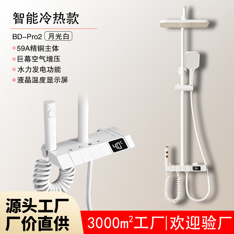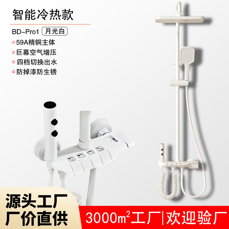 • 우아한 흰색 주변 조명 디지털 디스플레이 항공모함 4단 샤워기 - 구리 본체