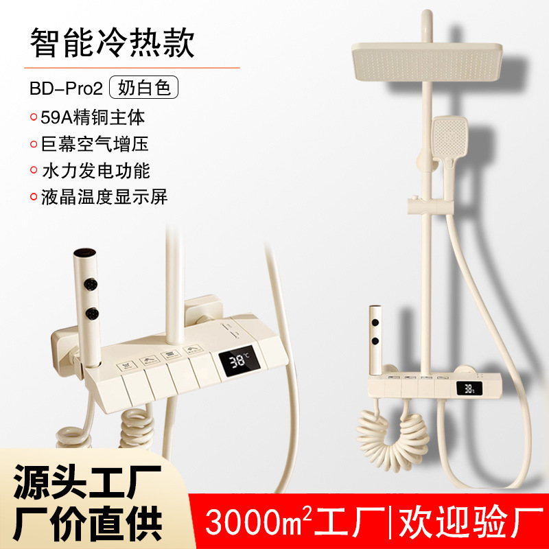 • 유백색 디지털 디스플레이 항공모함 4단 샤워기 - 구리 본체