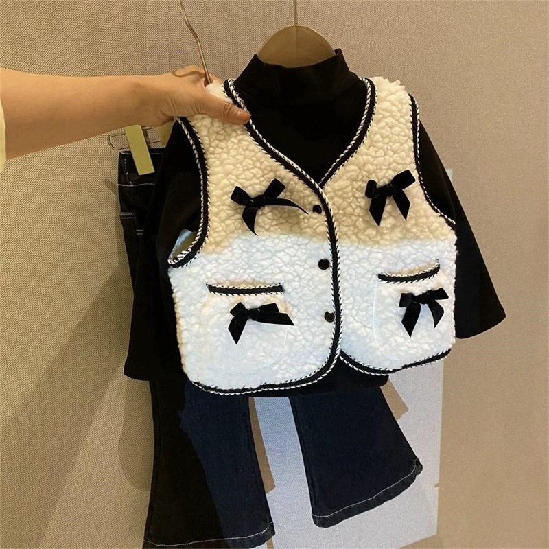 여아용 두꺼운 벨벳 따뜻하고 세련된 조끼 2025 겨울 새 스타일 아기 소녀 작은 향기로운 양복 조끼스토어 가기