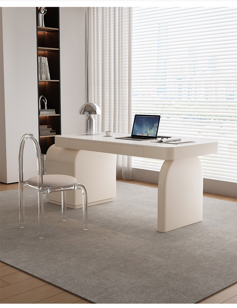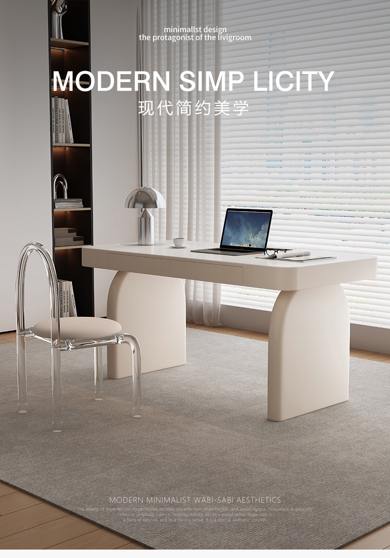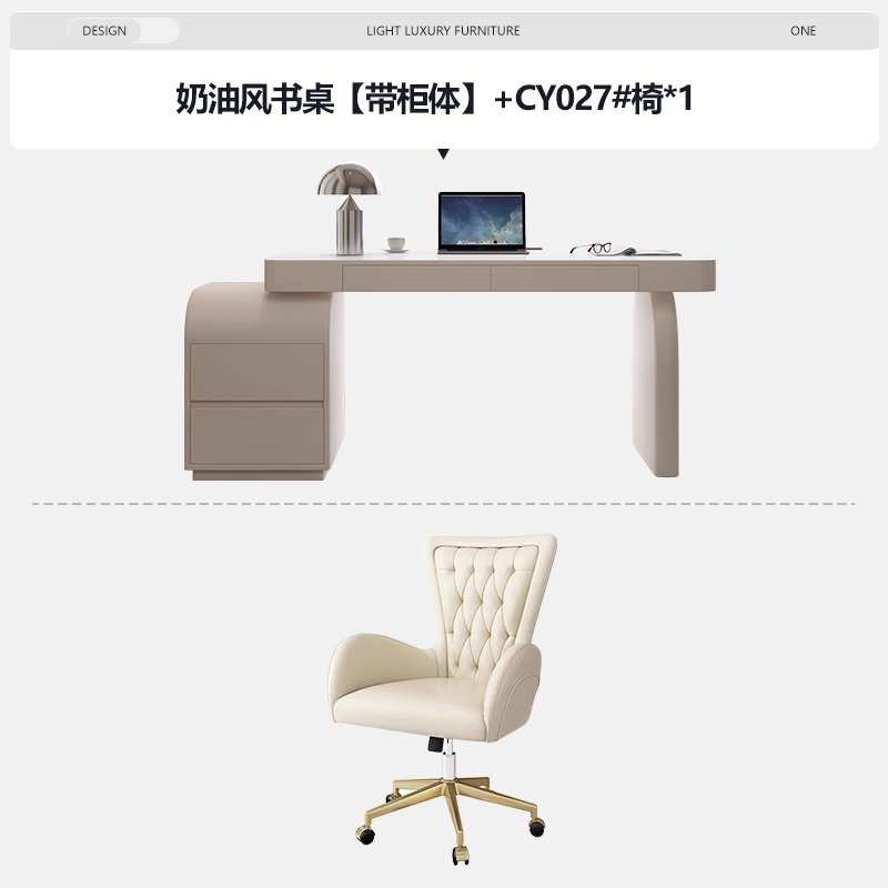 프렌치 크림 스타일 책상, 모던하고 심플한 고급 학습 컴퓨터 책상, 가벼운 럭셔리 스타일 화장대 일체형 책상