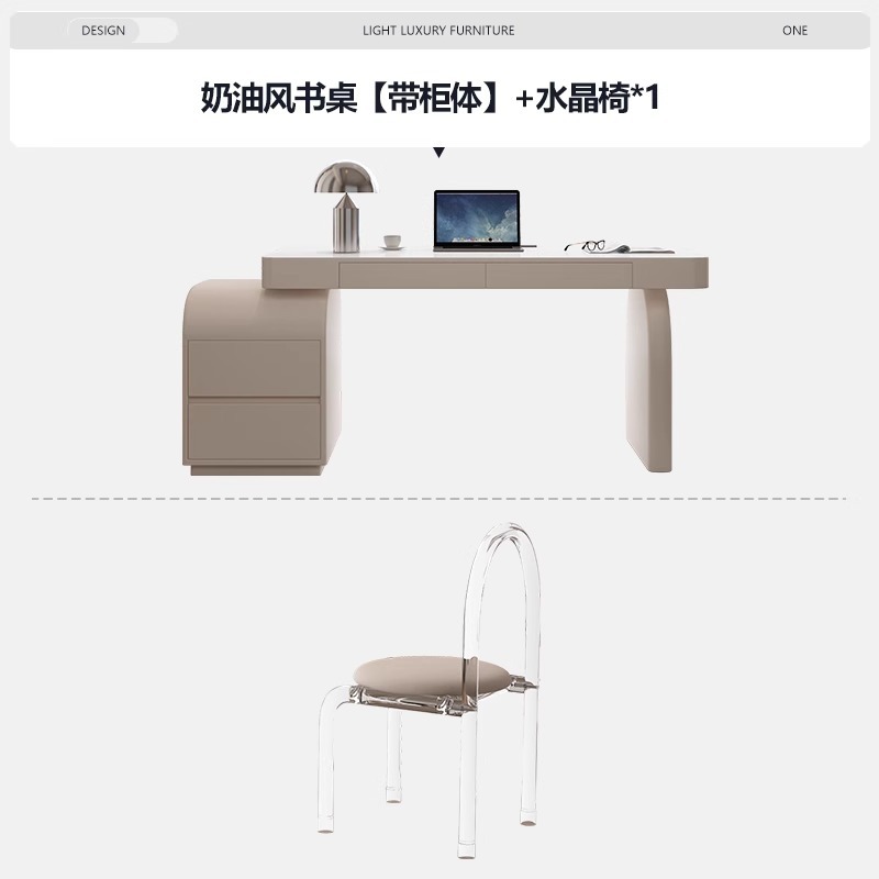 • 크림 스타일 책상 [캐비닛 포함] + 크리스탈 의자*1