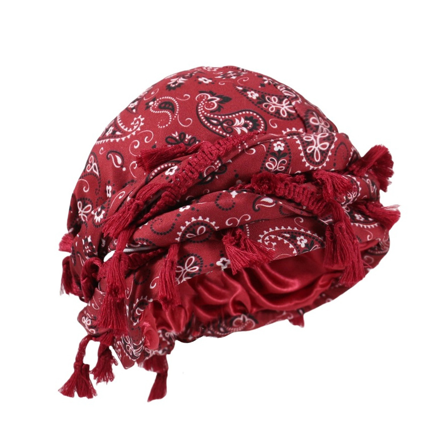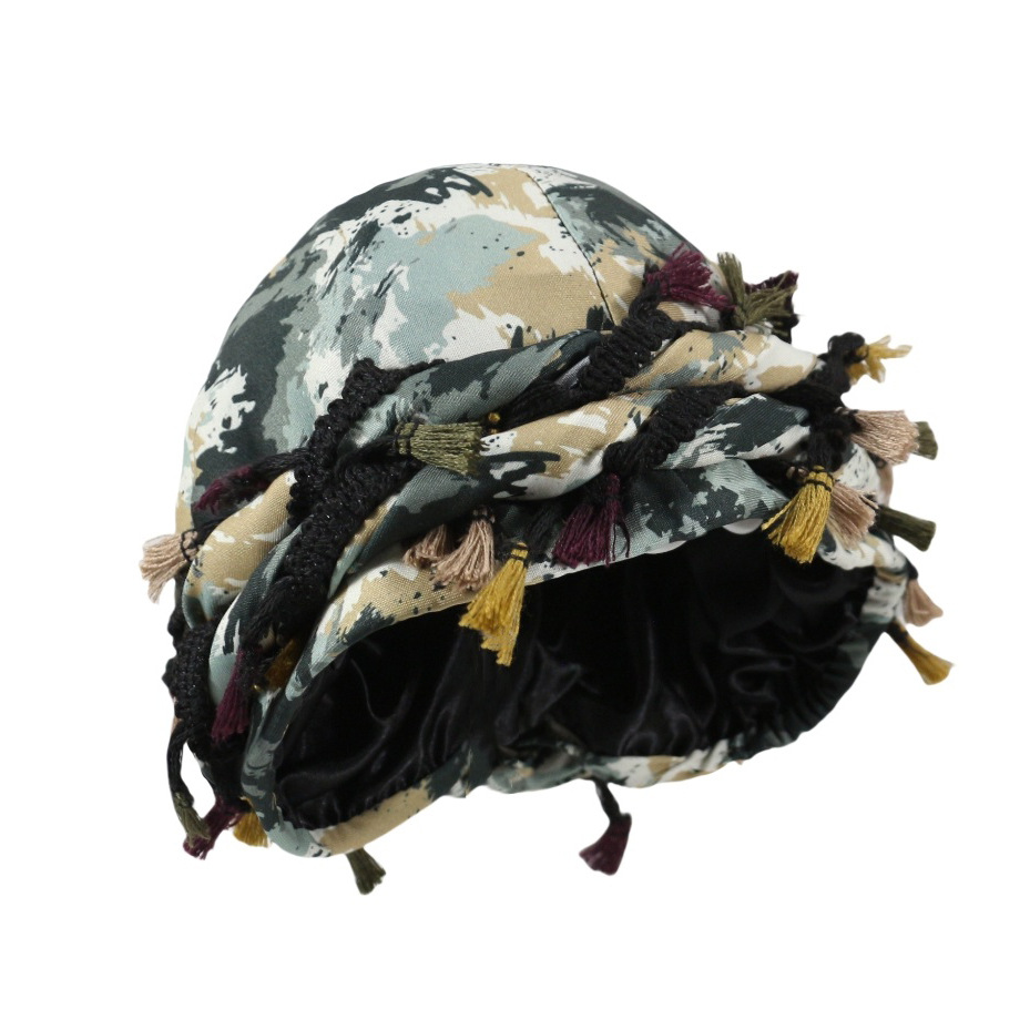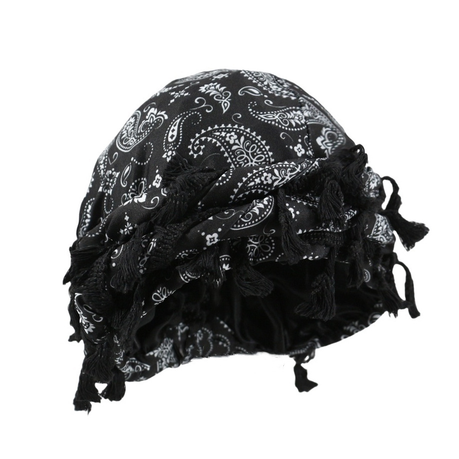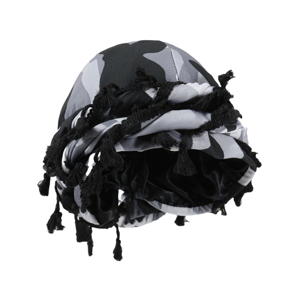 Xiyin 국경 간 인기 판매 캐슈 위장 프린트 태슬 모자 중동 유럽과 미국 스트리트 더블 레이어 터번 힙합 트위스트 테일 모자