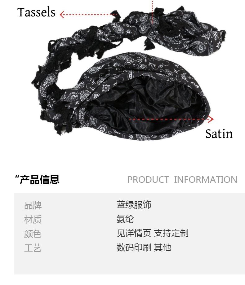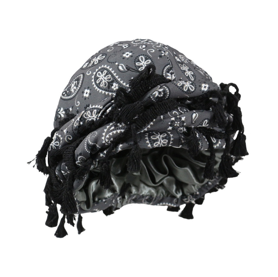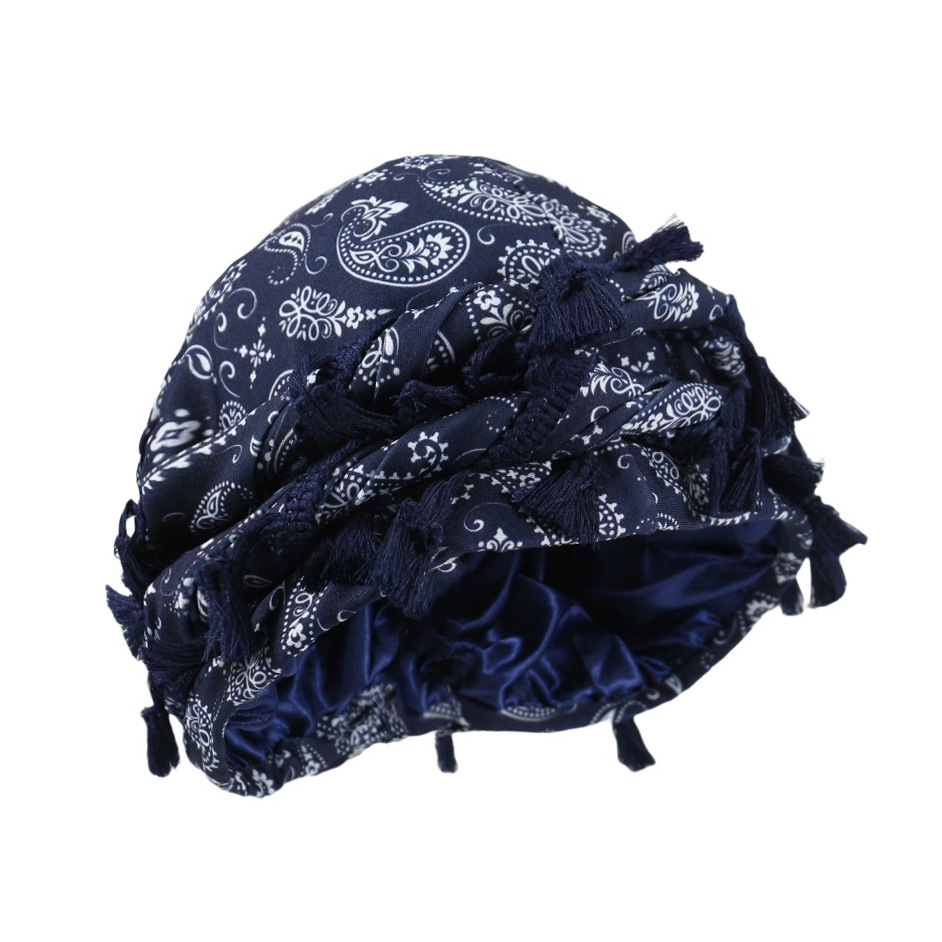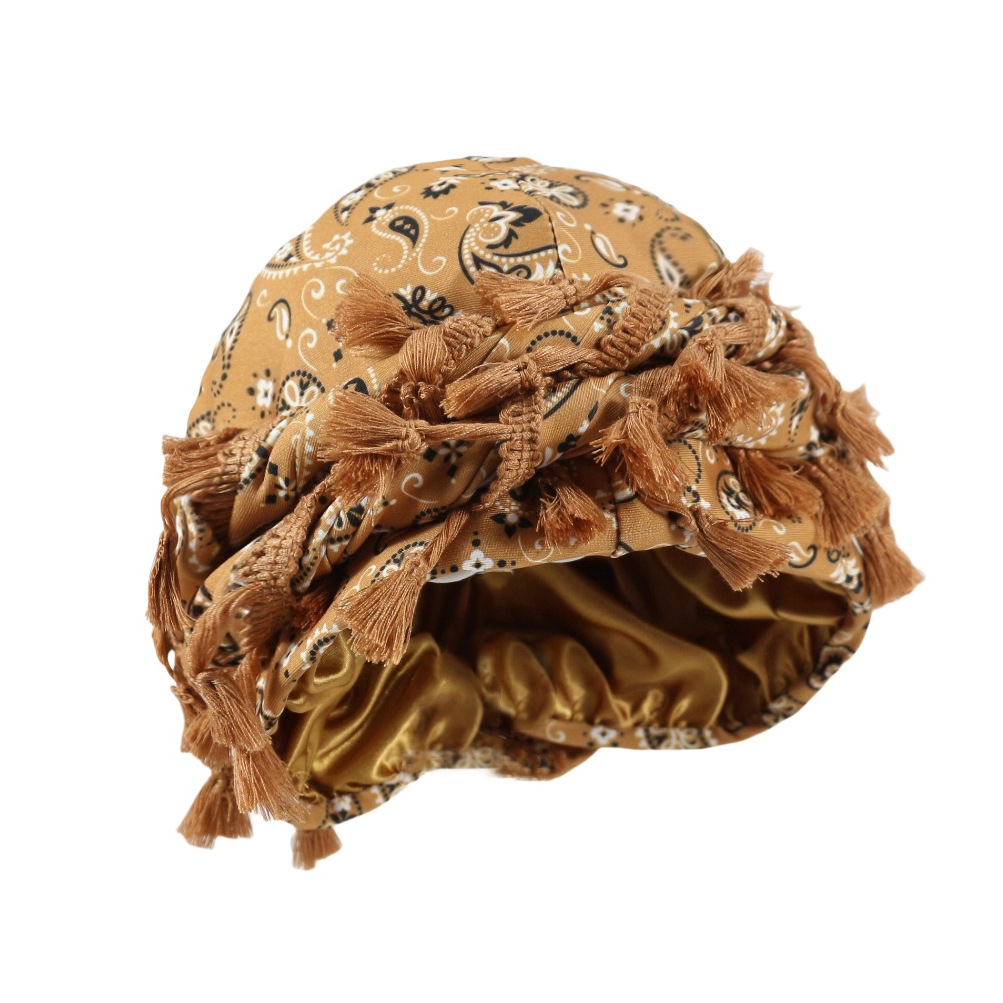 Xiyin 국경 간 인기 판매 캐슈 위장 프린트 태슬 모자 중동 유럽과 미국 스트리트 더블 레이어 터번 힙합 트위스트 테일 모자