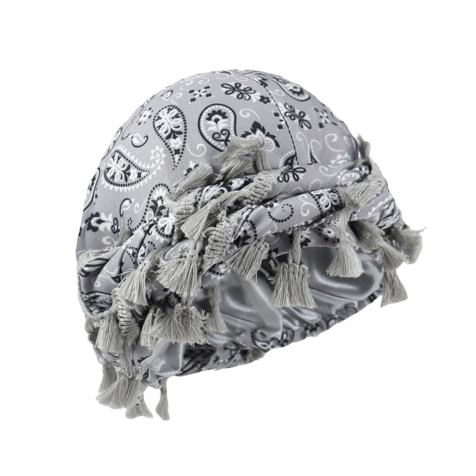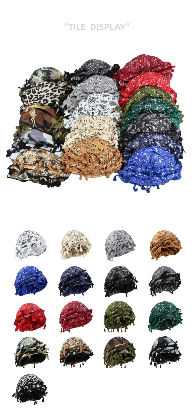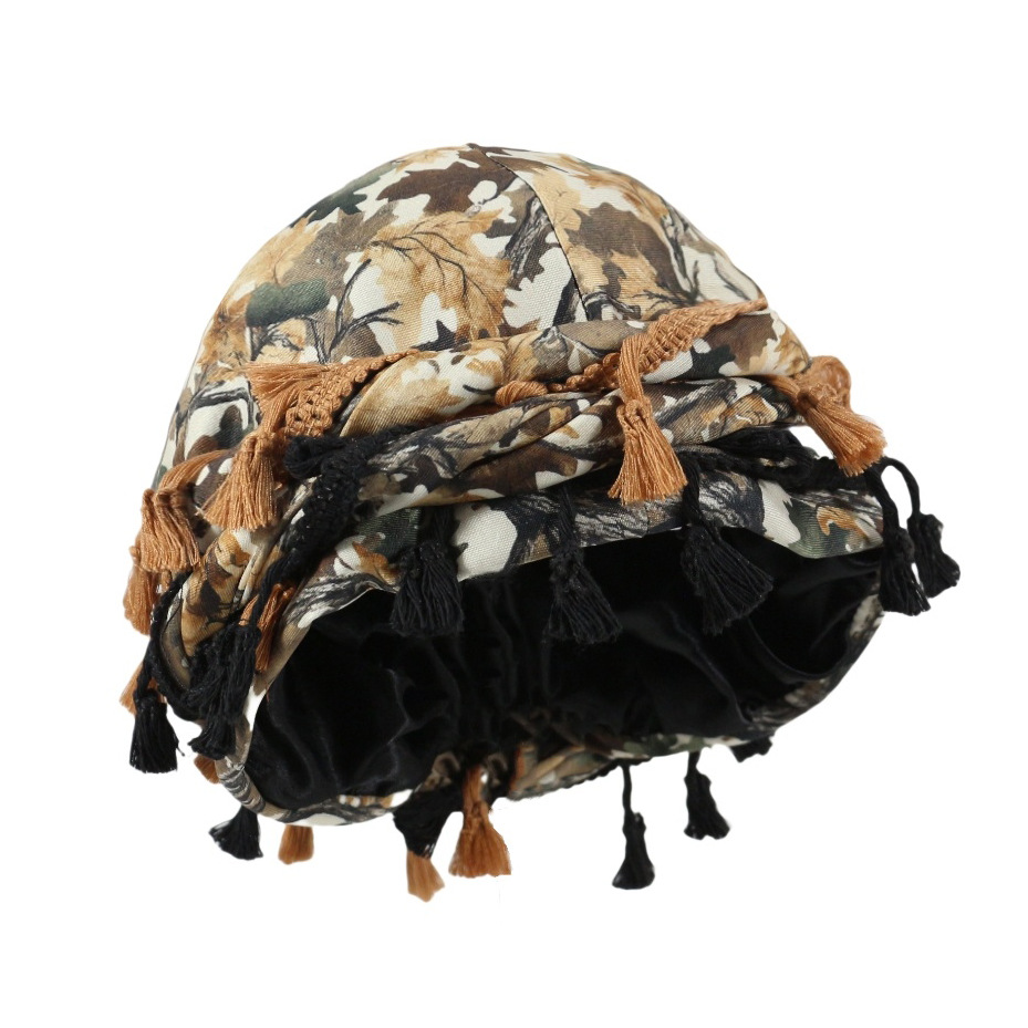 Xiyin 국경 간 인기 판매 캐슈 위장 프린트 태슬 모자 중동 유럽과 미국 스트리트 더블 레이어 터번 힙합 트위스트 테일 모자스토어 가기
