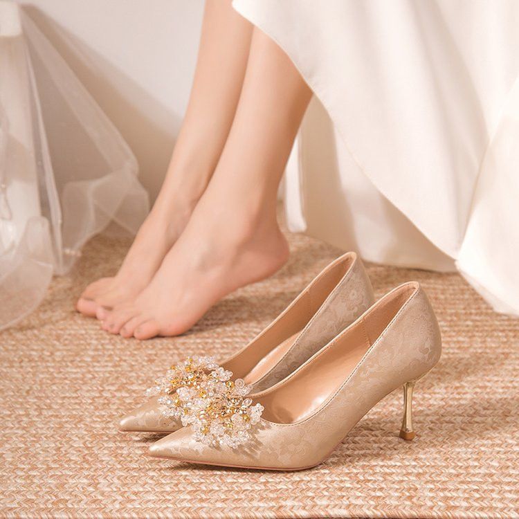 프렌치 스타일의 피곤하지 않은 하이힐, 여성을 위한 아름다운 데일리 웨어러블 하이힐, 2025 봄 여름 신상 패션 다용도 펌프스 하이힐스토어 가기