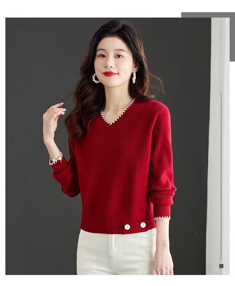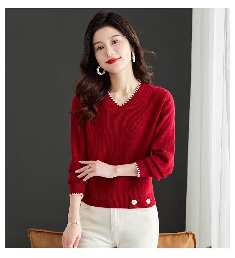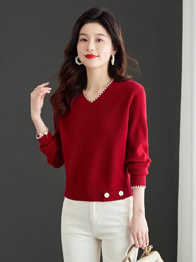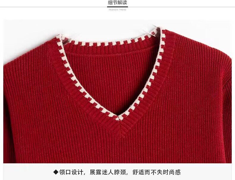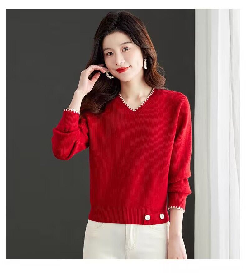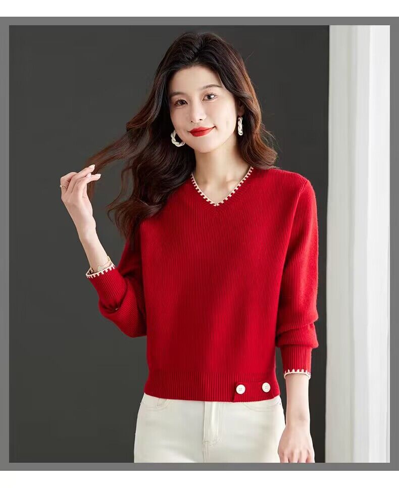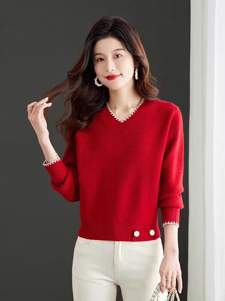 2025년 가을 겨울 여성용 레드 브이넥 쇼트 스웨터 새로운 스타일의 브이넥 탑 하이엔드 셔츠스토어 가기