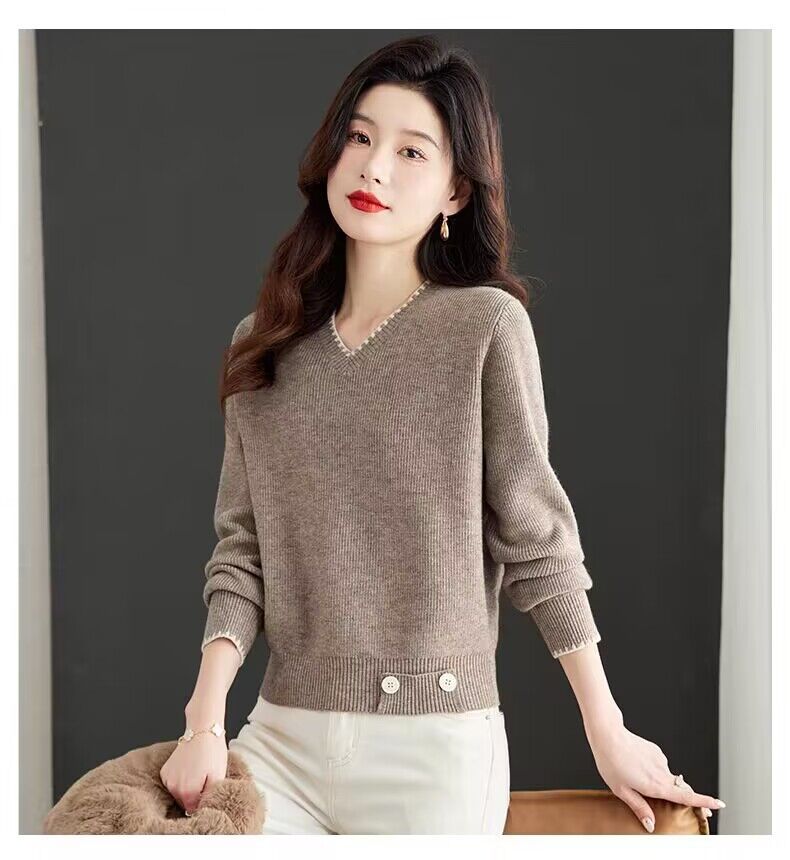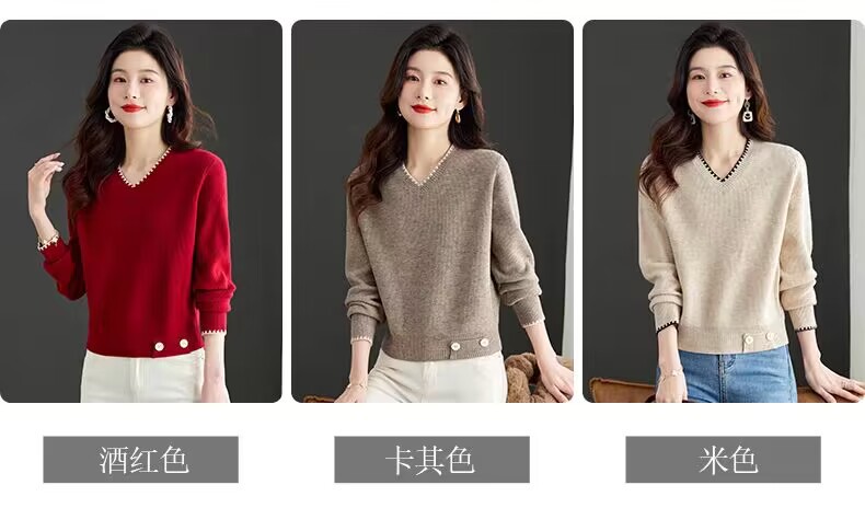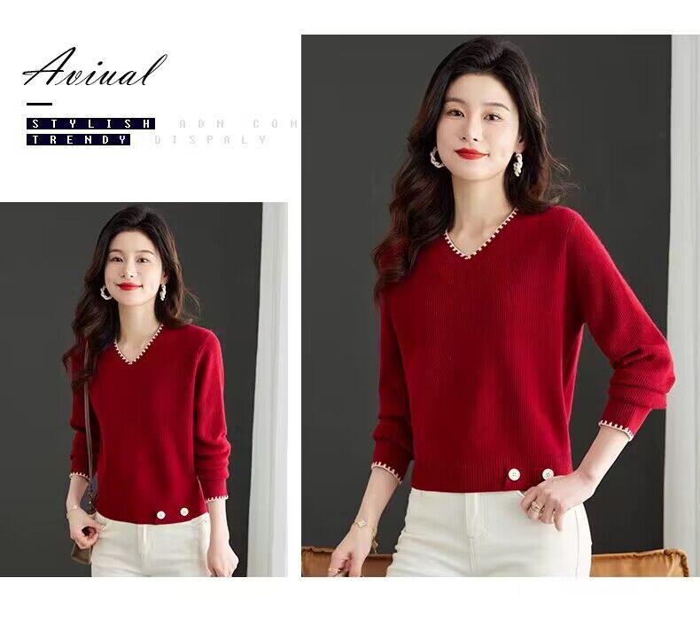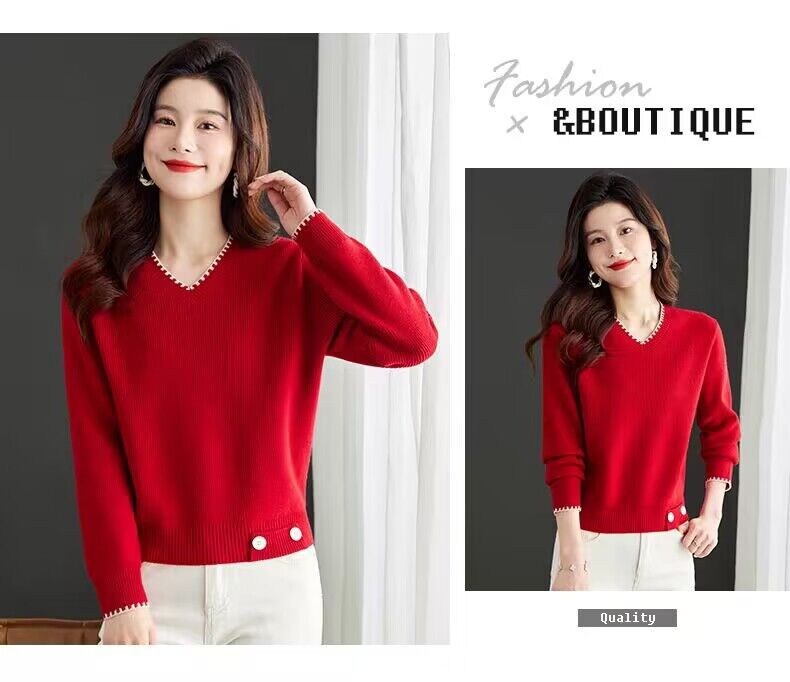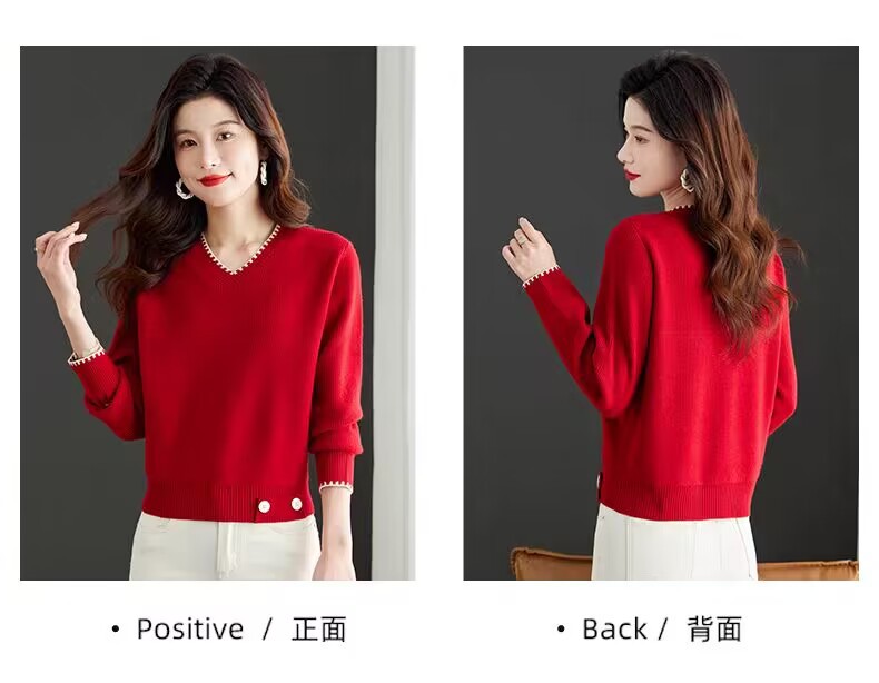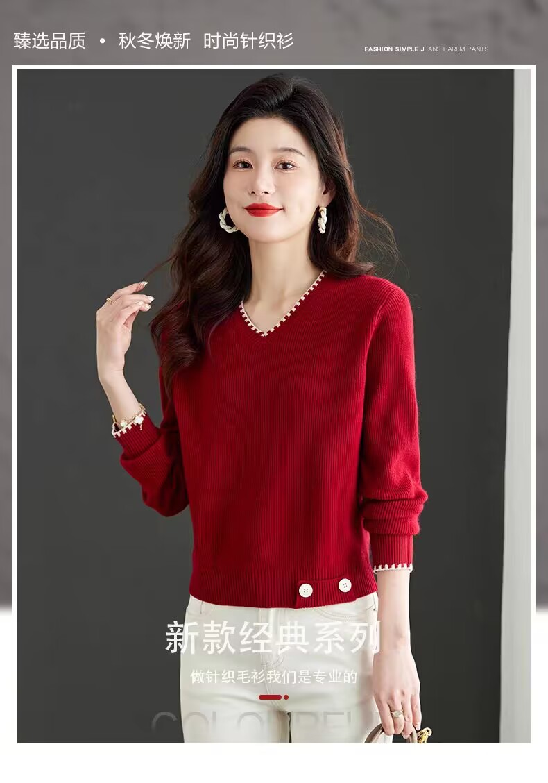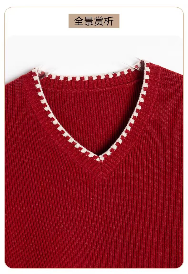 2025년 가을 겨울 여성용 레드 브이넥 쇼트 스웨터 새로운 스타일의 브이넥 탑 하이엔드 셔츠스토어 가기