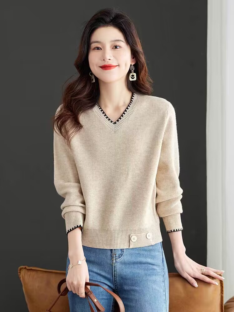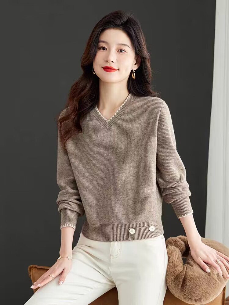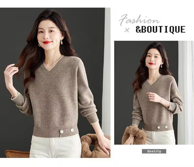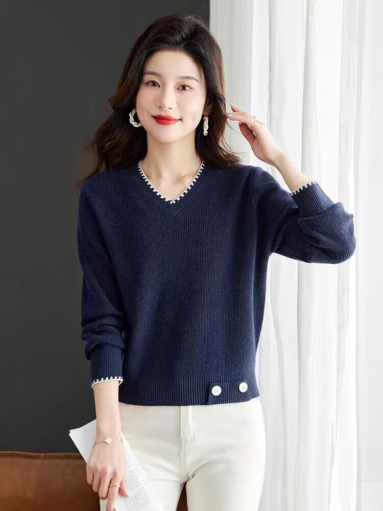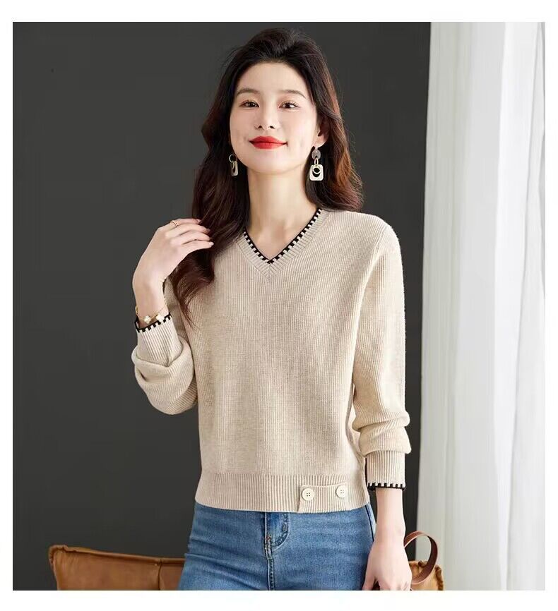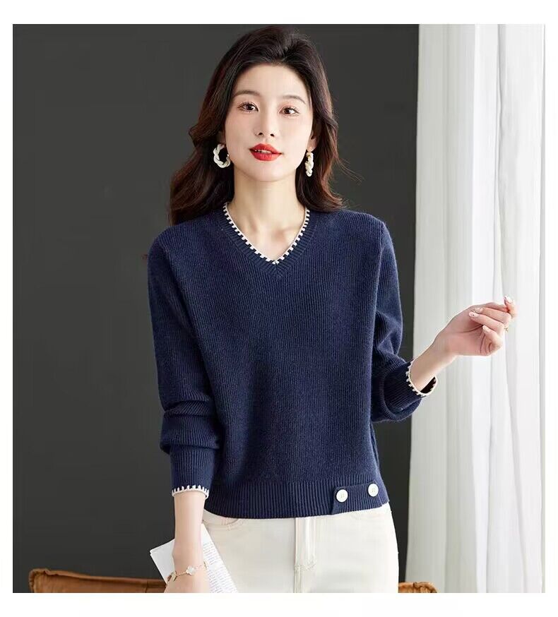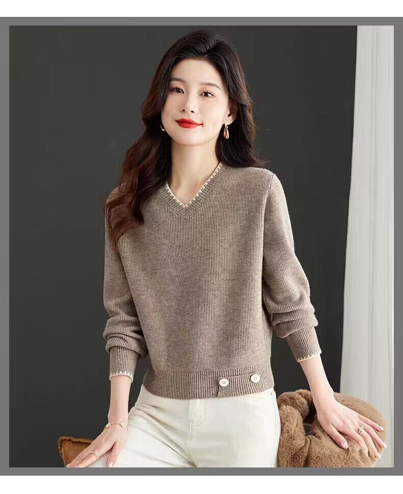 2025년 가을 겨울 여성용 레드 브이넥 쇼트 스웨터 새로운 스타일의 브이넥 탑 하이엔드 셔츠스토어 가기