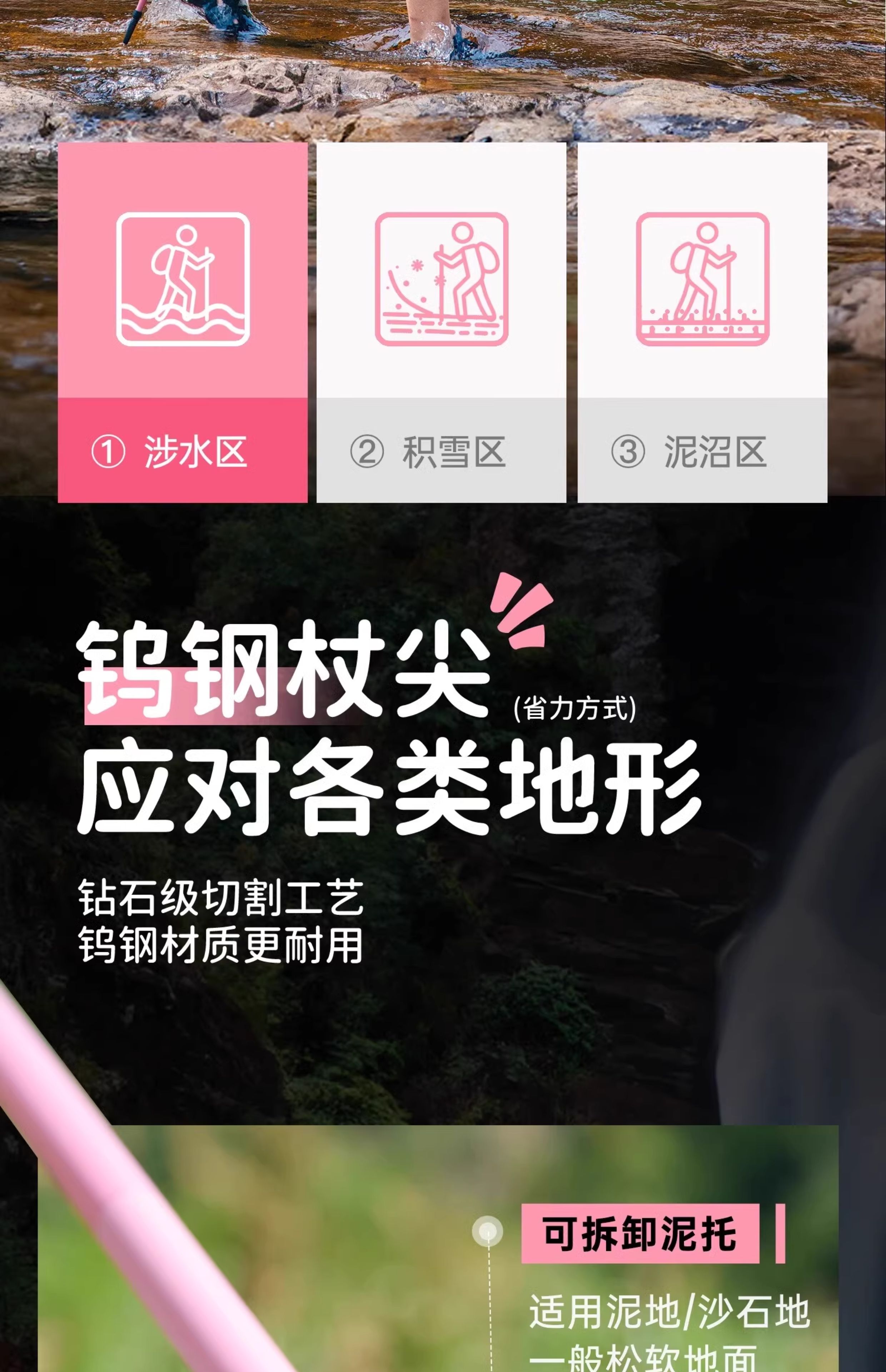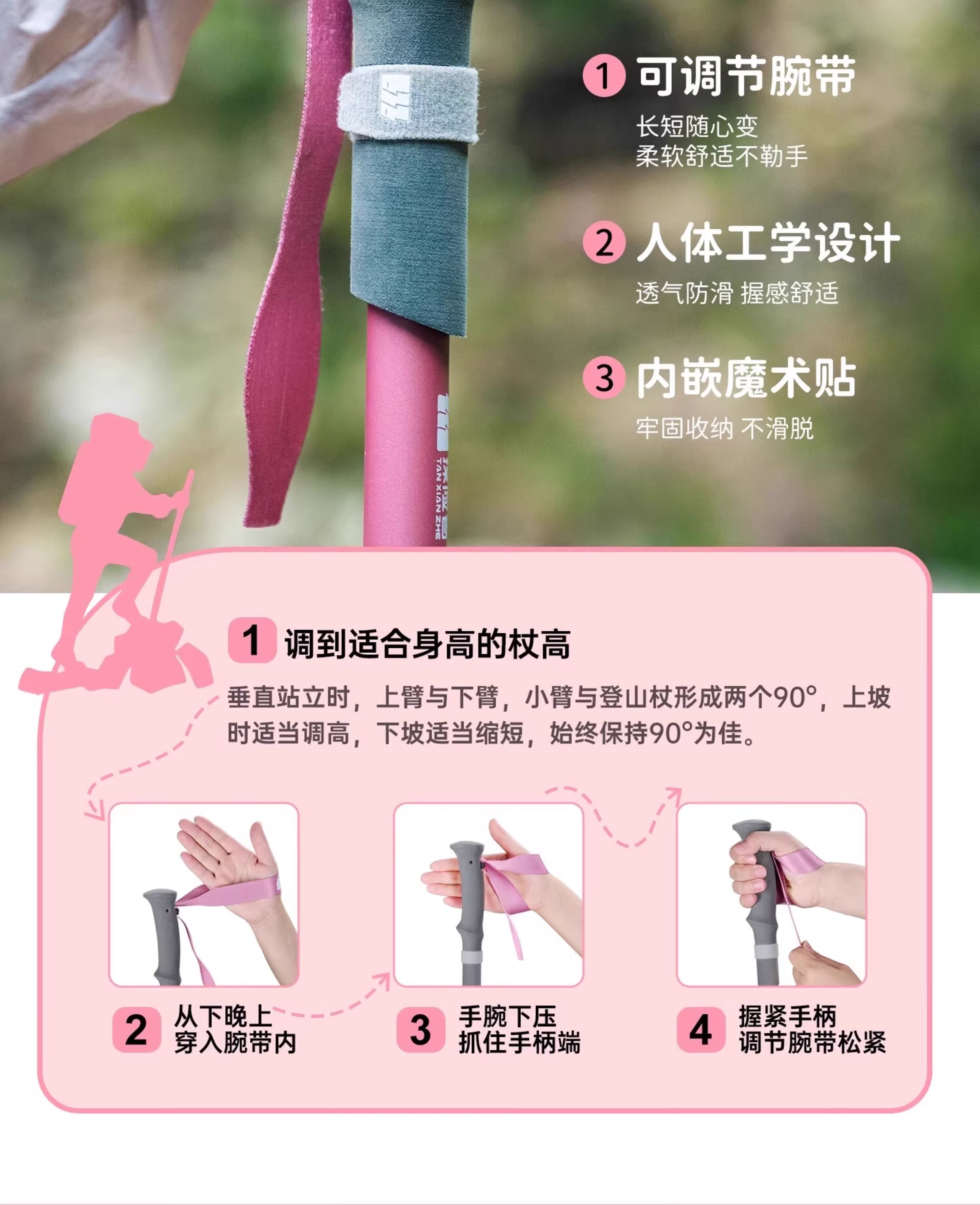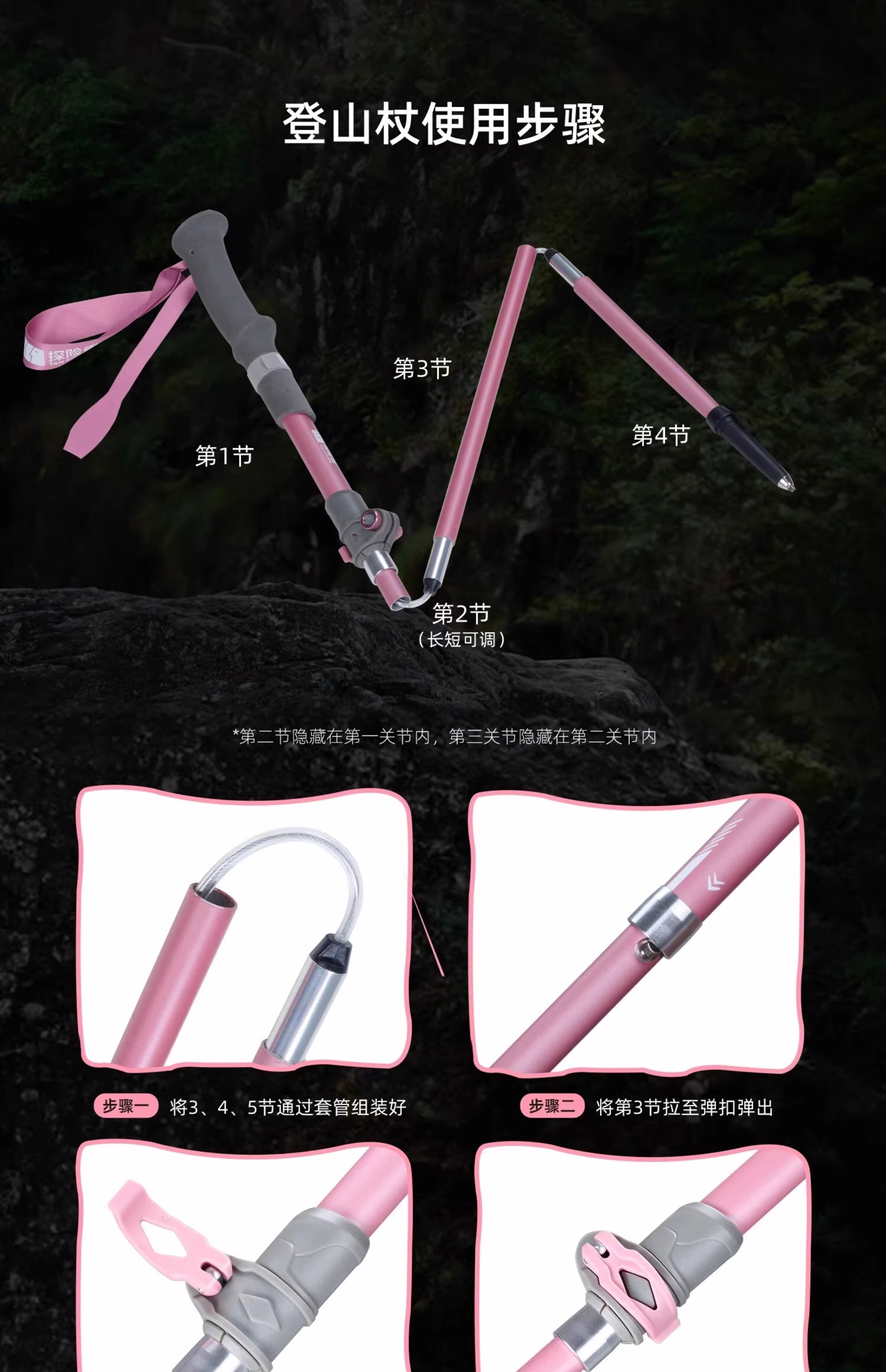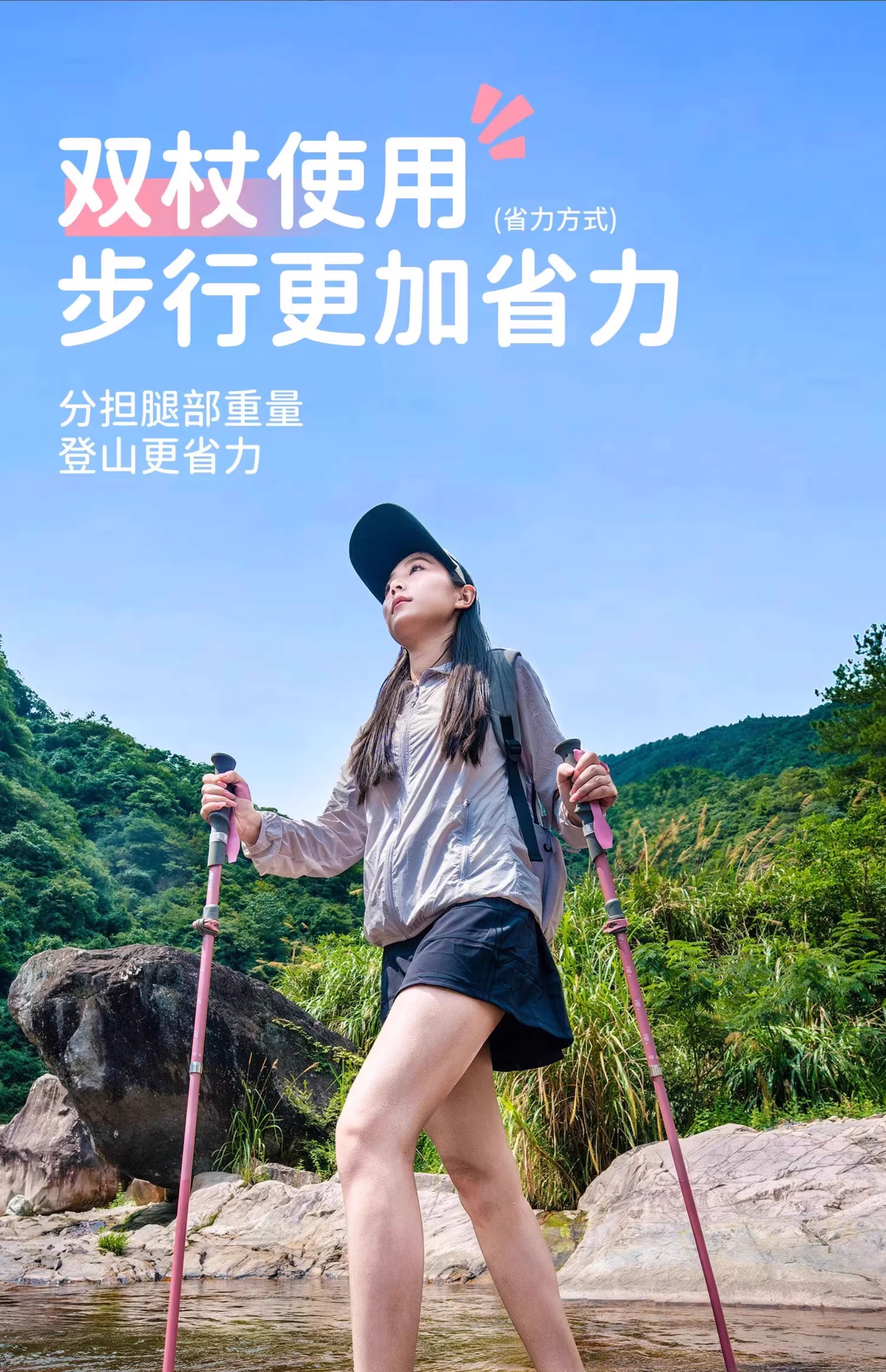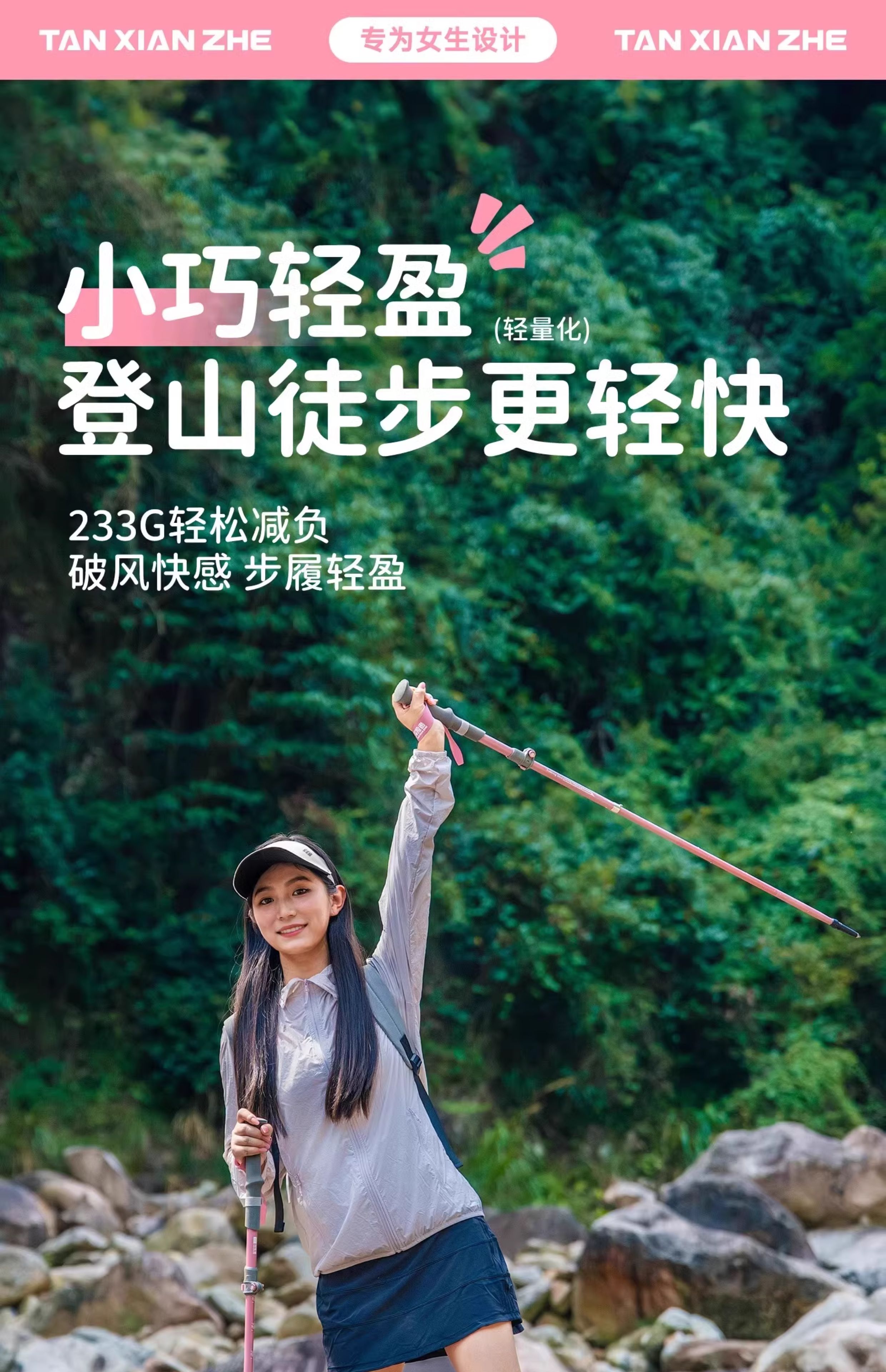 탄소 섬유 접이식 등산 스틱 여성용 스틱 전문 야외 하이킹 장비 핑크 소녀 스틱스토어 가기