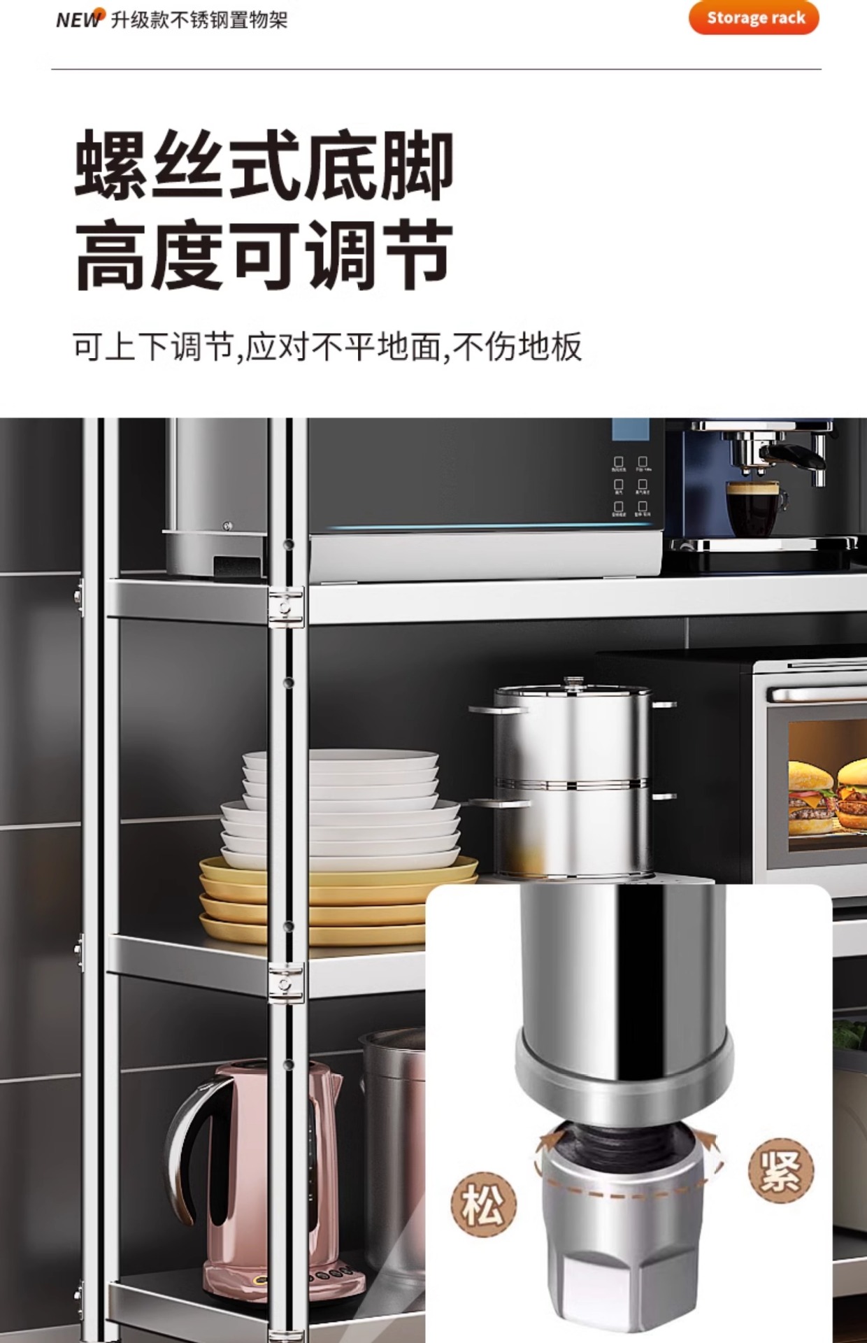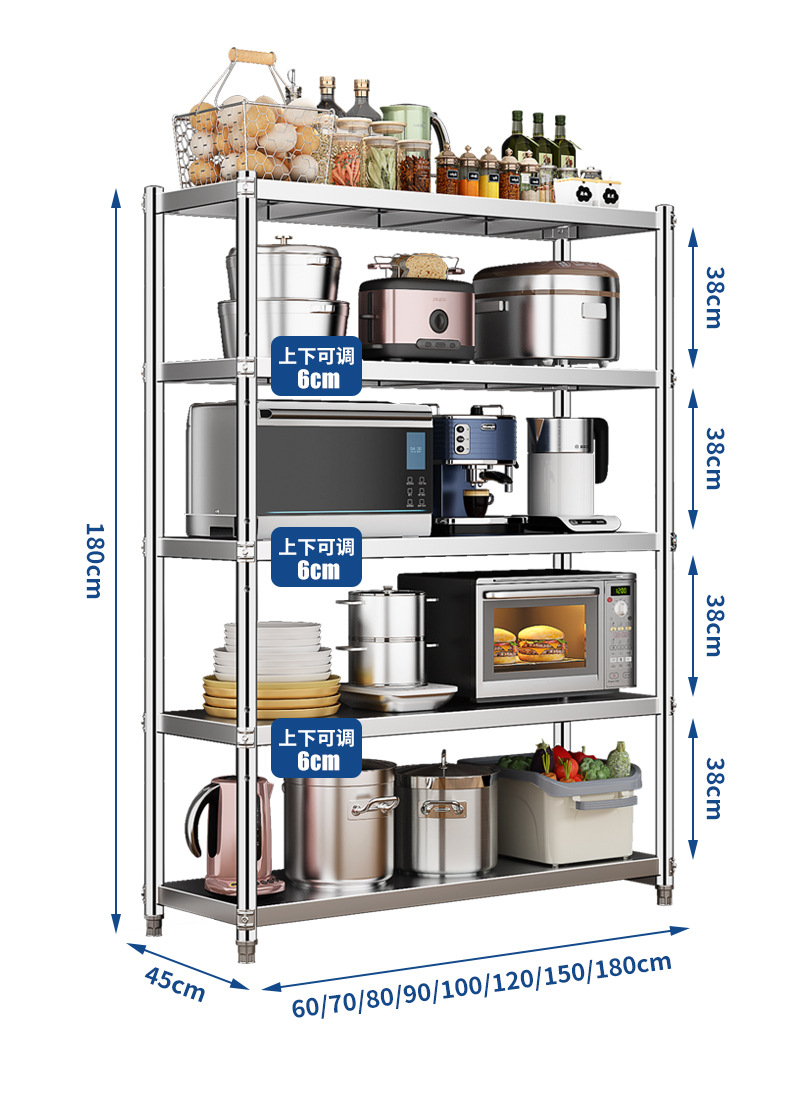 스테인레스 스틸 주방 선반 바닥에서 천장까지 다층 5 층 캐비닛 냄비 선반 전자 레인지 보관 스토리지 랙 홈 선반