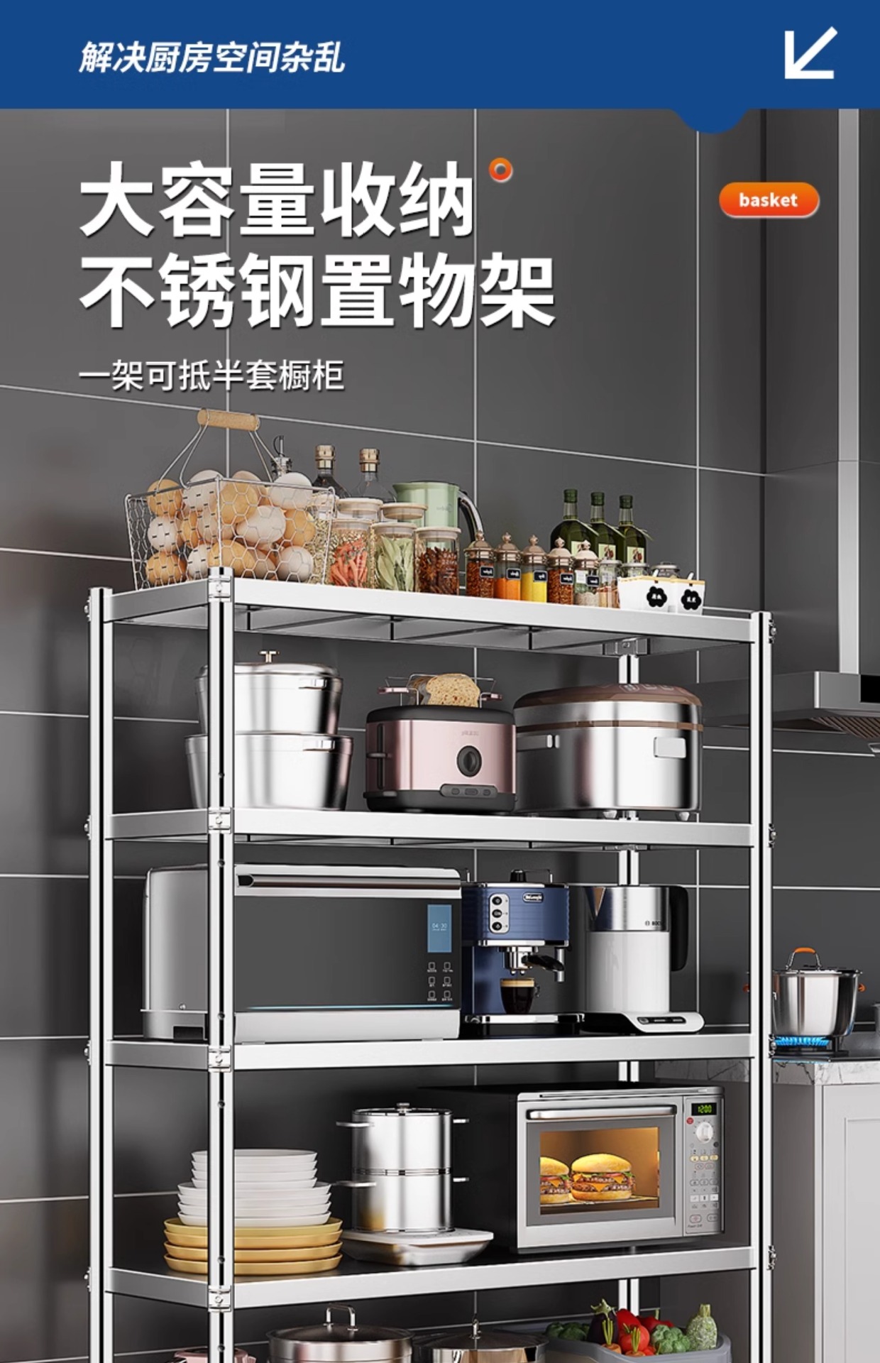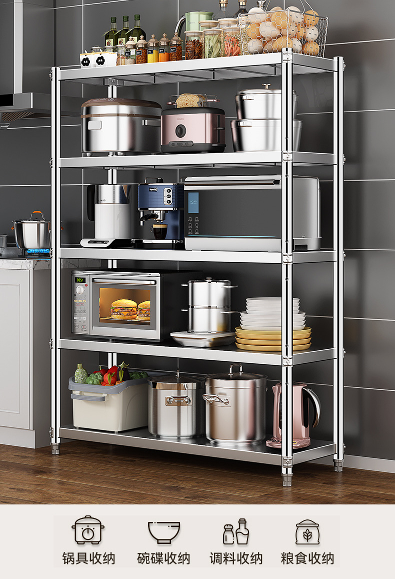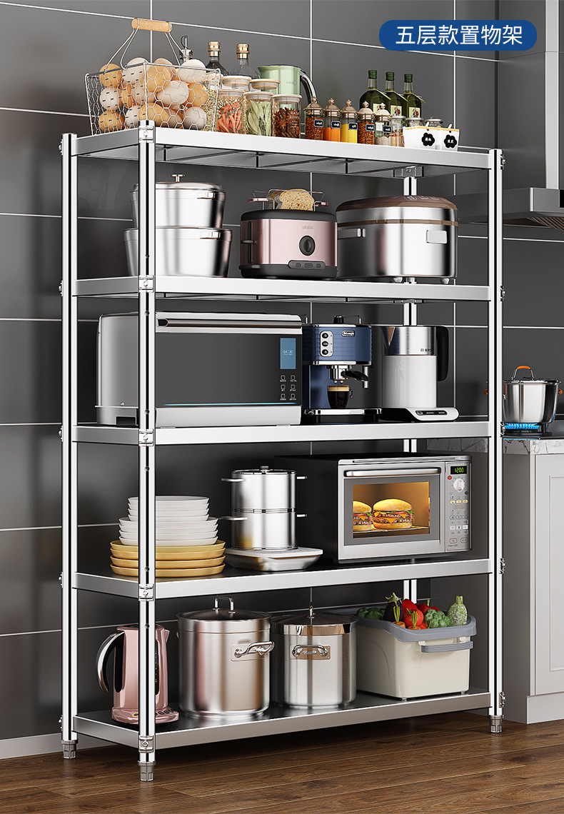 스테인레스 스틸 주방 선반 바닥에서 천장까지 다층 5 층 캐비닛 냄비 선반 전자 레인지 보관 스토리지 랙 홈 선반스토어 가기