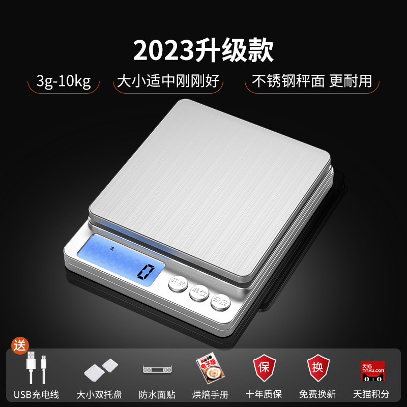 • [업그레이드 및 확대] 삼용모델 10kg/1g 더블트레이 + 계량컵 + 방수스티커 + USB 데이터케이블 + 배터리