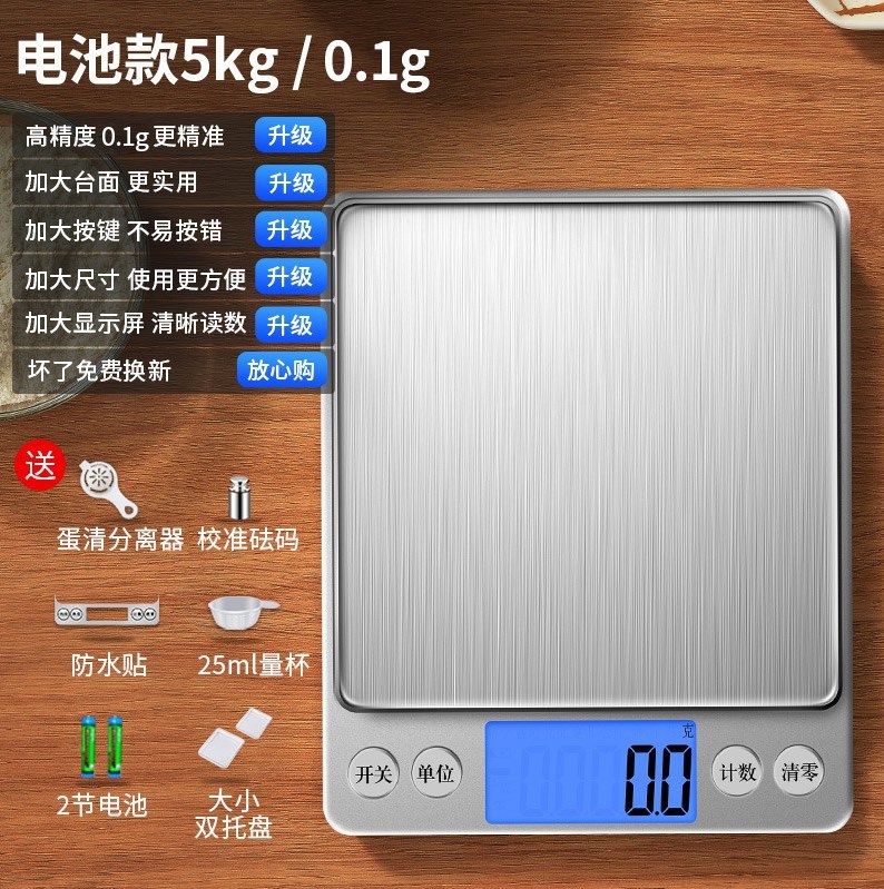• [업그레이드 및 확대] 배터리 모델 10kg/1g 이중 트레이 + 계량컵 + 방수 스티커 + 배터리