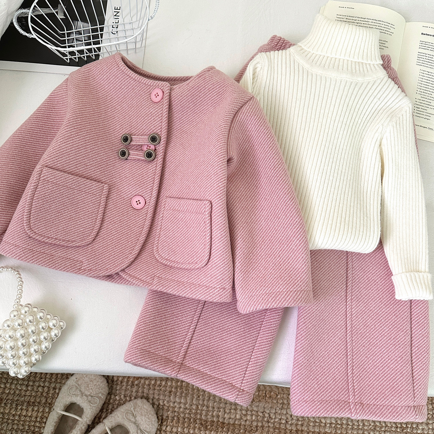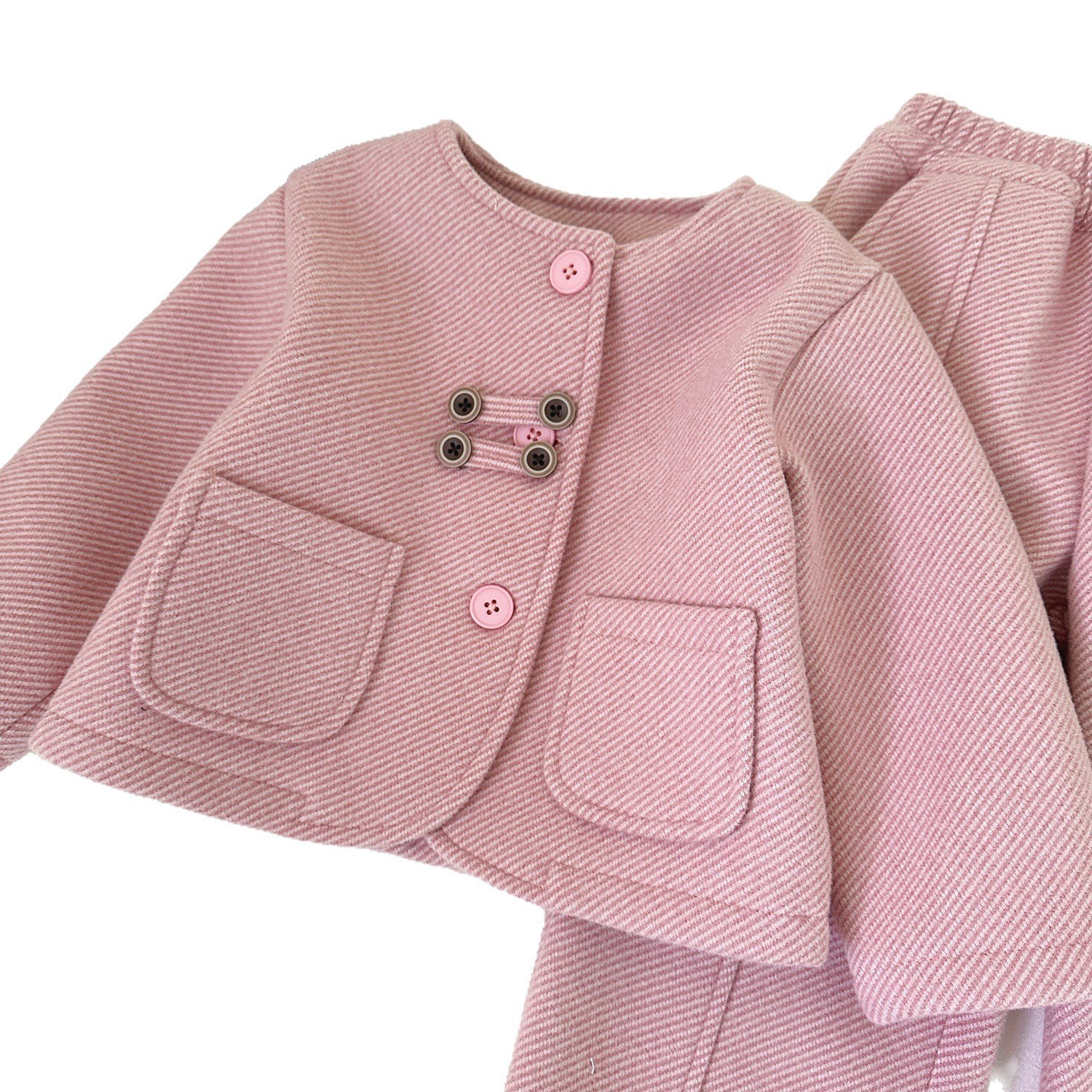 새로운 한국 스타일 여아용 두꺼운 겨울 의류 세트, 패셔너블한 두꺼운 긴팔 재킷과 바지 세트