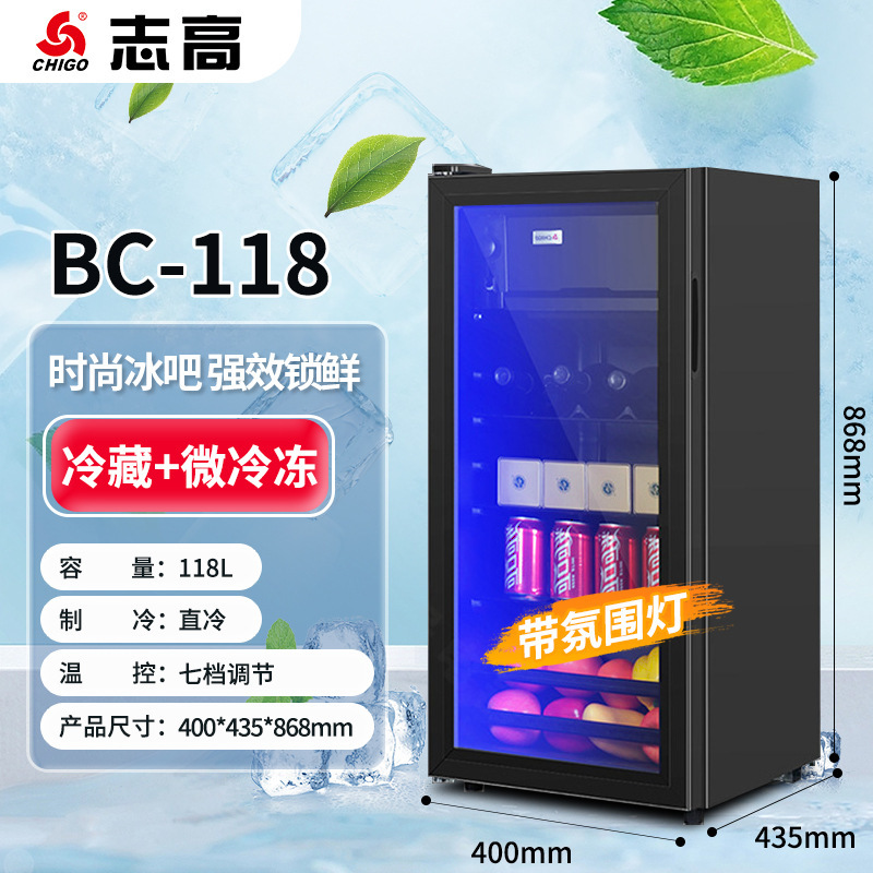 Chigo 소형 홈 아이스 바 신선 유지 차 시가 레드 와인 음료 와인 캐비닛 냉장고 투명 도어 호텔 냉장고스토어 가기