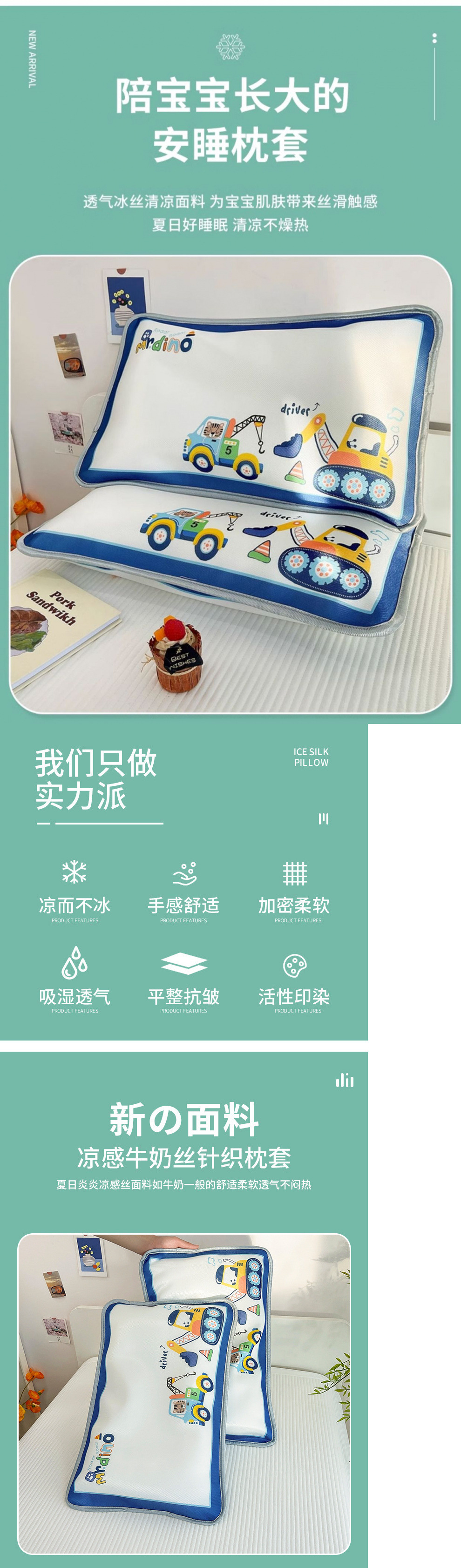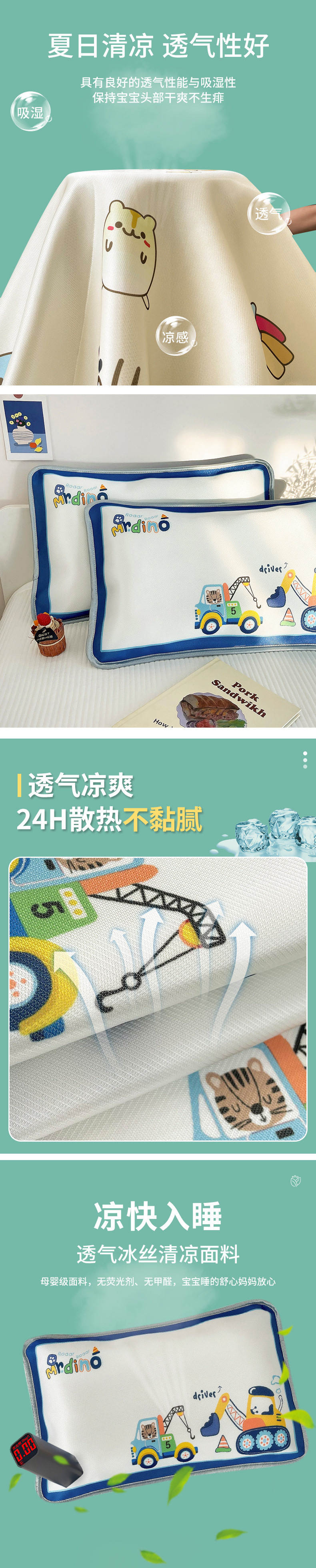 여름 어린이 얼음 실크 베개 커버 쌍 30×50 소년 만화 아기 시원한 베개 유치원 베개스토어 가기