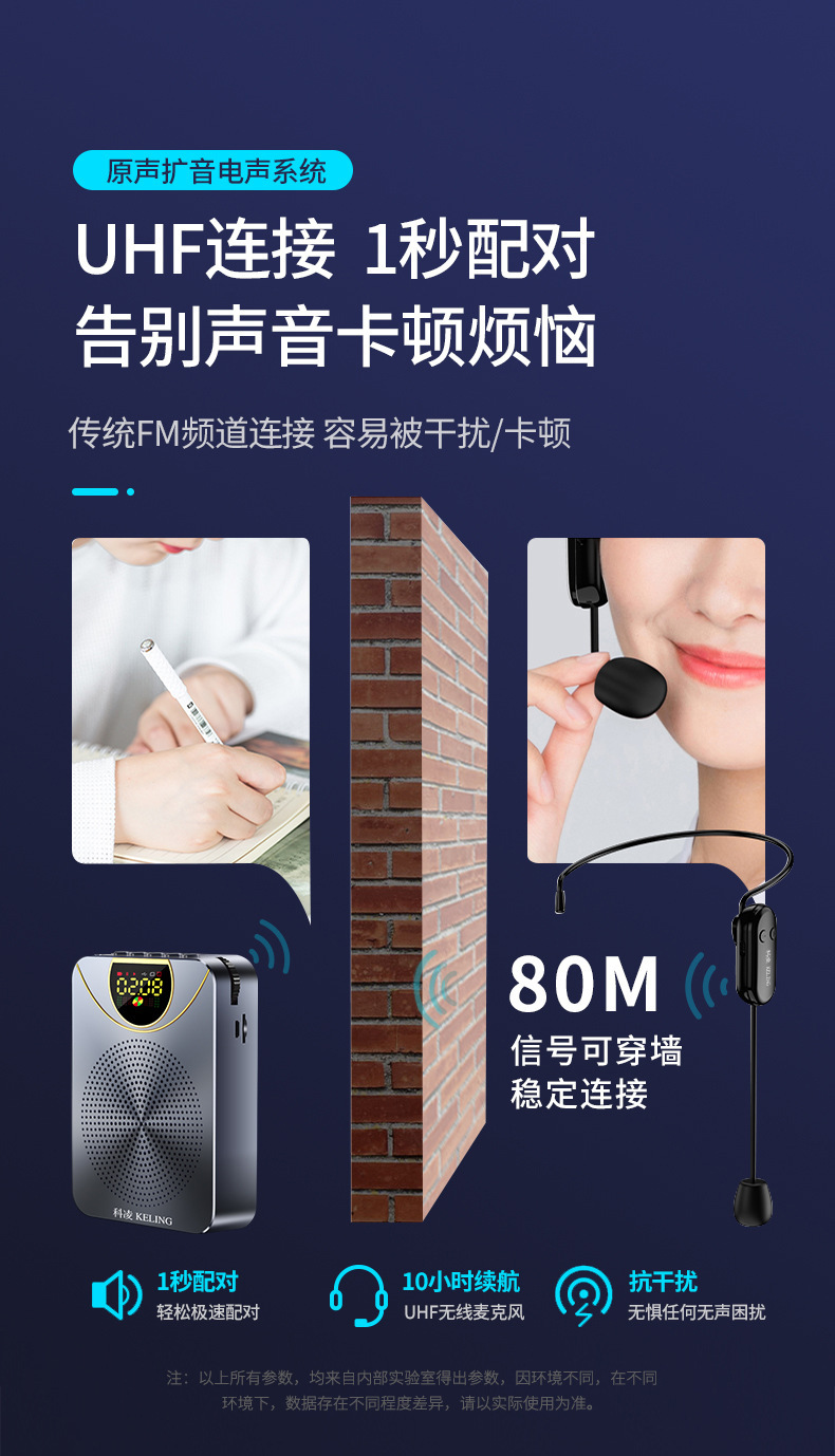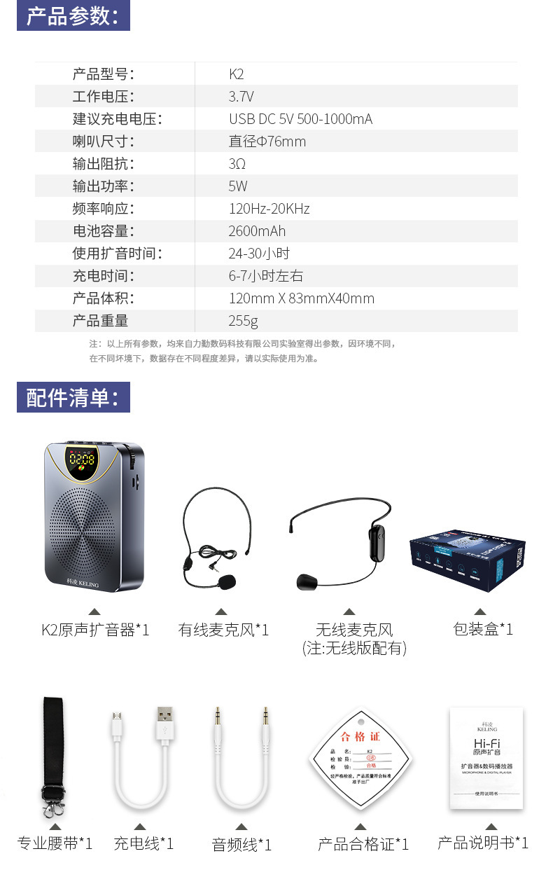 Keling K2 Little Bee 확성기 교사 수업 대용량 스피커 투어 가이드 허리 장착형 무선 헤드셋 메가폰스토어 가기