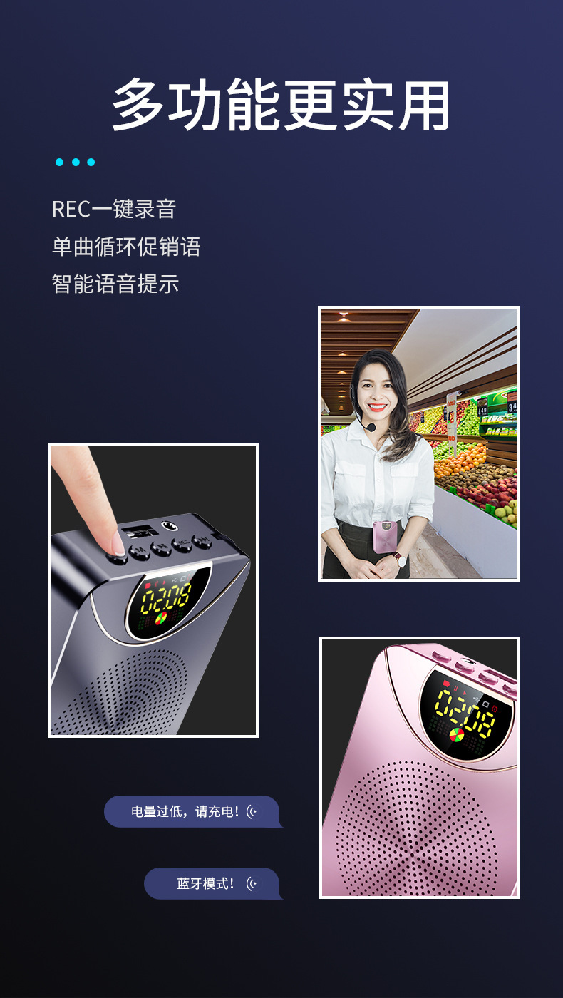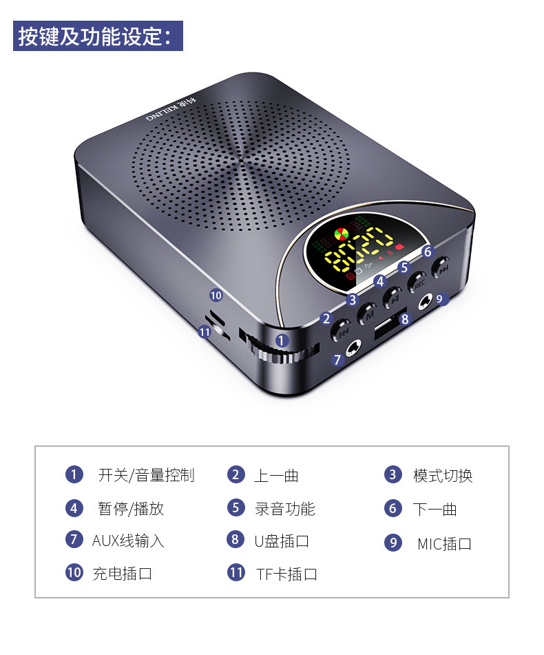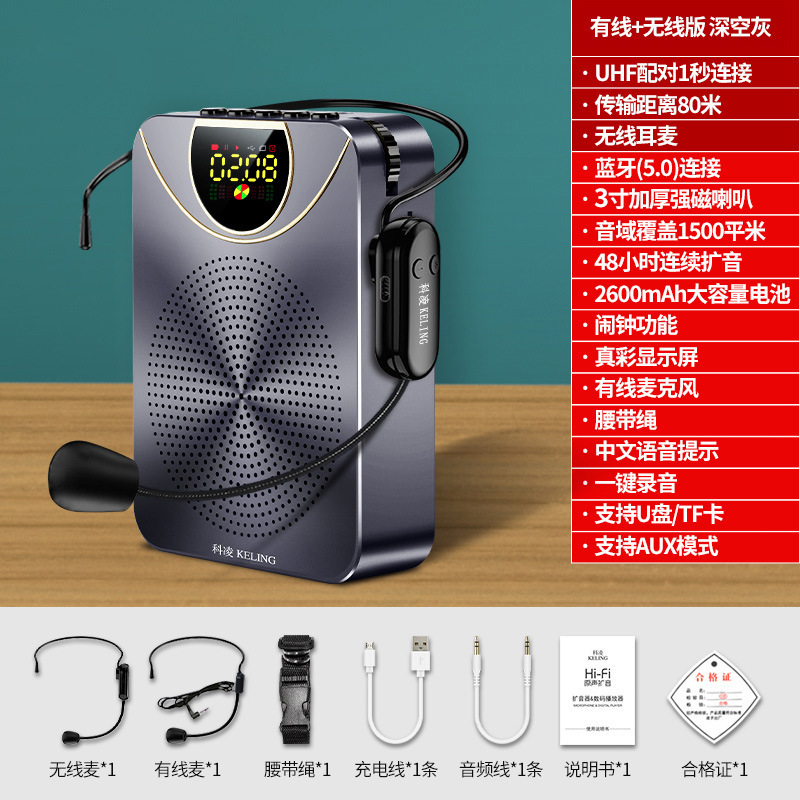 • 회색 UHF 무선 + 유선 버전 증폭기 루프 재생 + Bluetooth 스피커 + 강력한 배터리 수명