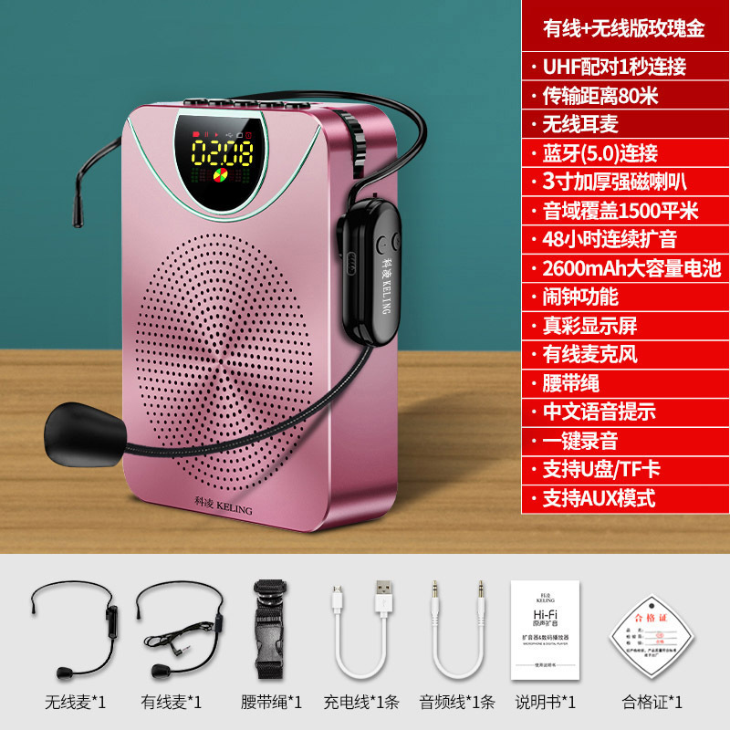 Keling K2 Little Bee 확성기 교사 수업 대용량 스피커 투어 가이드 허리 장착형 무선 헤드셋 메가폰