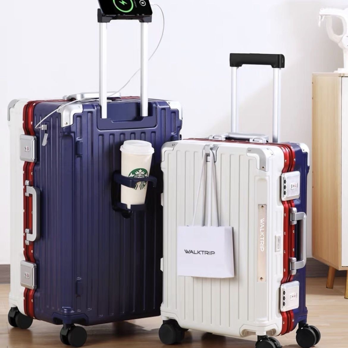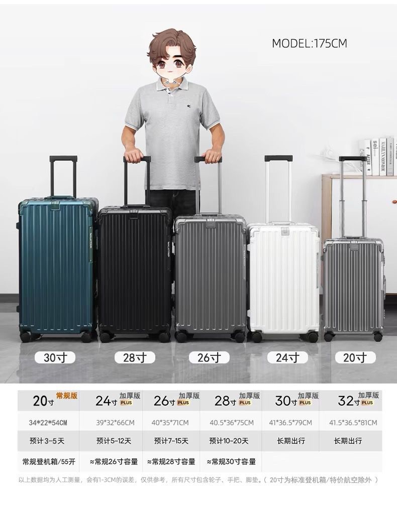 일본으로 수출 대용량 가방 30inch 두꺼운 강한 내구성 알루미늄 프레임 트롤리 케이스 여성용 가방 가죽 케이스스토어 가기