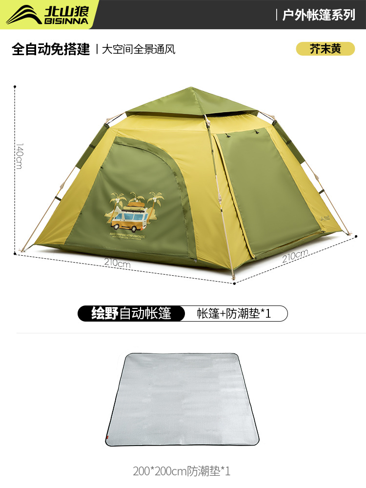 Beishanlang 자동 텐트 야외 휴대용 접이식 캠핑 실버 코팅 태양 보호 캠핑 장비 자동 야외 풀 세트스토어 가기