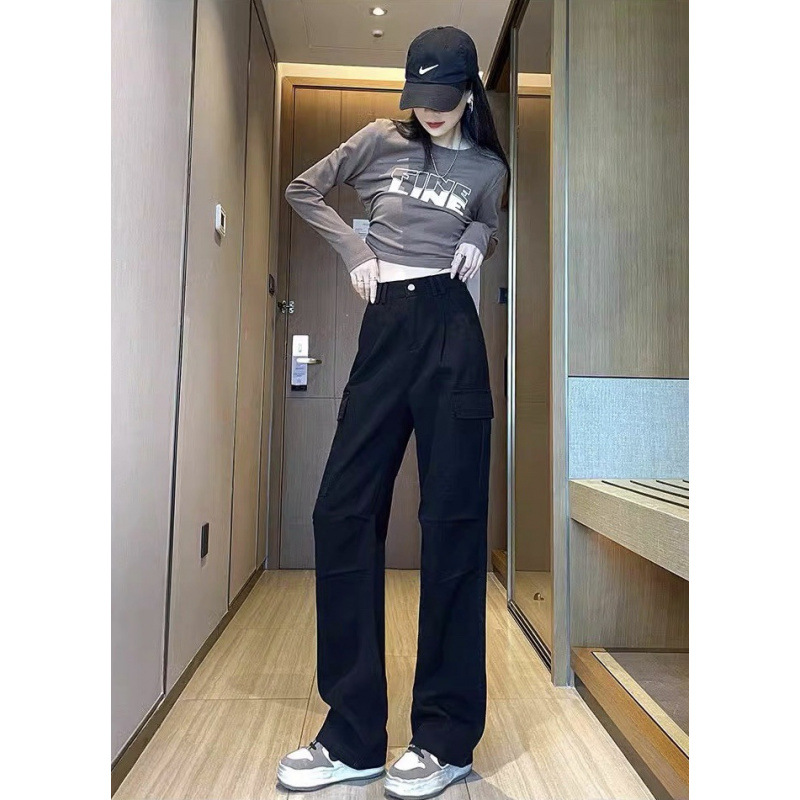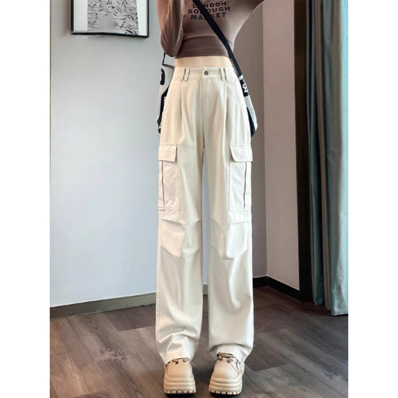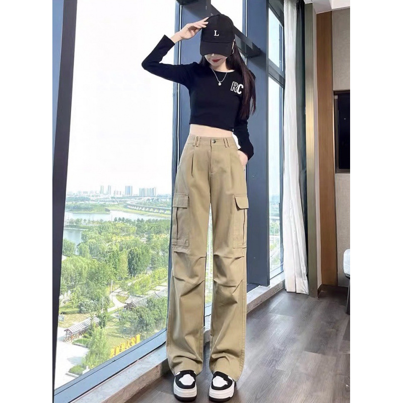 가을 여성을 위한 도매 디자인 작업복 새로운 스타일 하이 웨이스트 슬림 네로우 버전 틈새 미국 스트레이트 와이드 레그 하이킹 바지스토어 가기