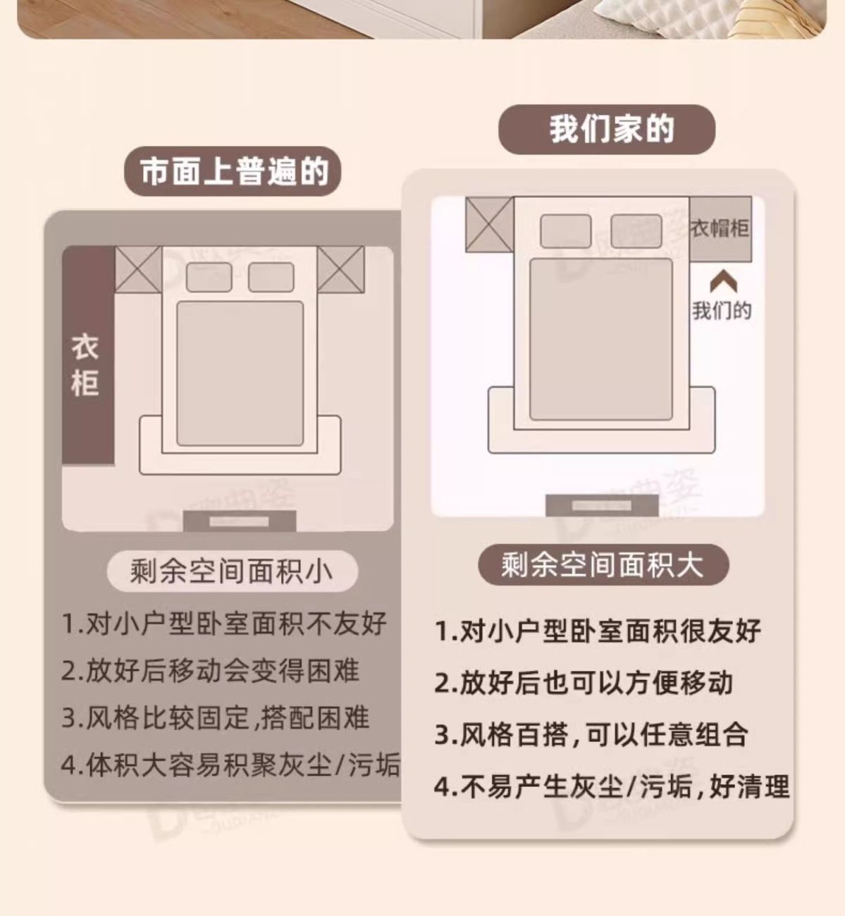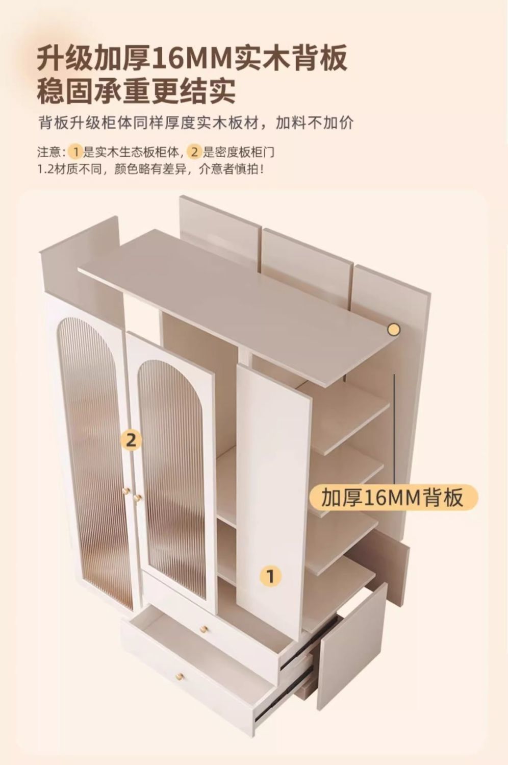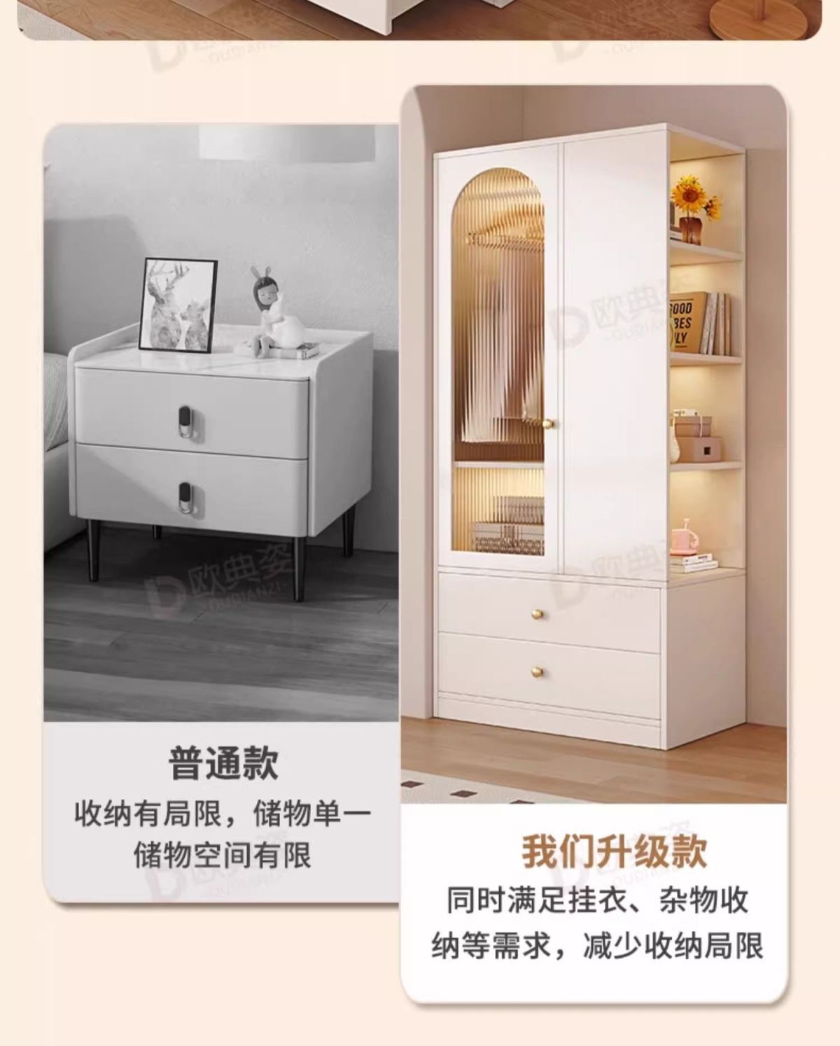단단한 나무 옷장과 침대 옆 탁자 일체형 간단한 크림 스타일 작은 아파트 침실 홈 옷장 침대 옆 수납 캐비닛