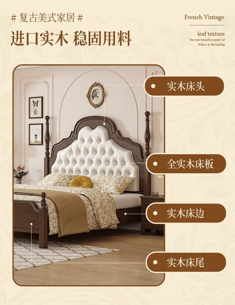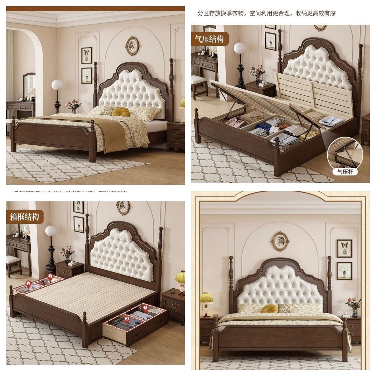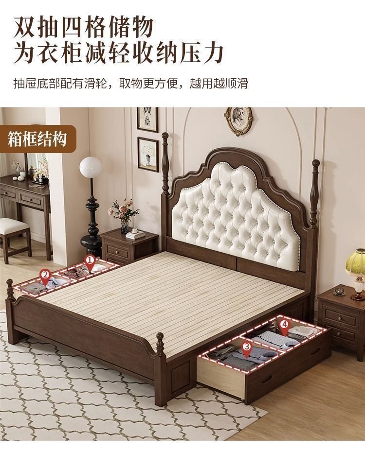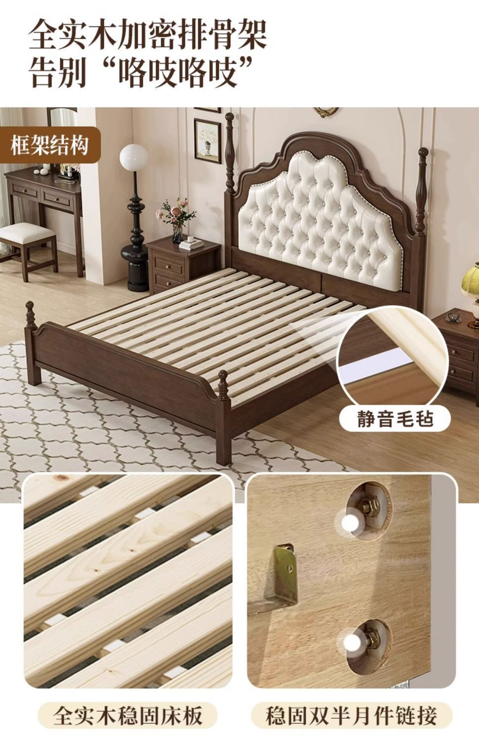 레트로 미국식 원목 침대 더블 심플 소프트 박스 침대 옆 안나 침대 라이트 럭셔리 프렌치 소형 원목 침대 웨딩 침대