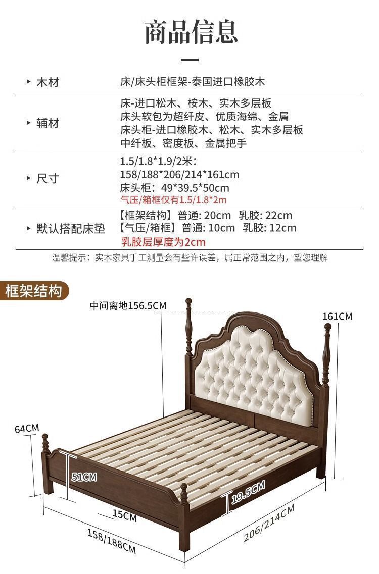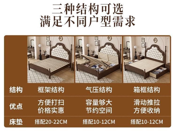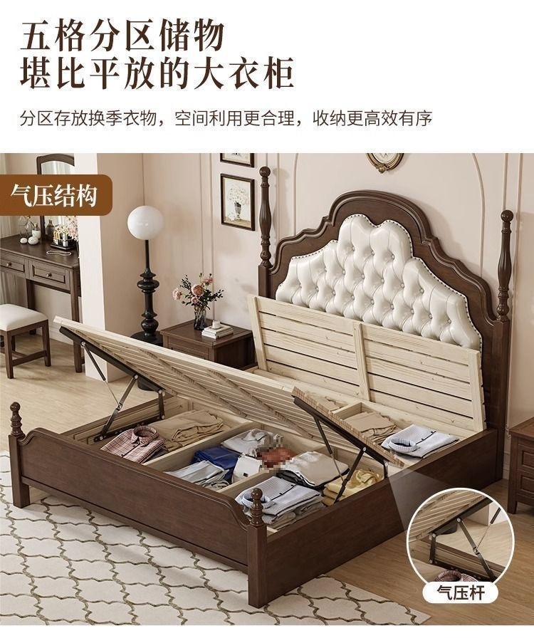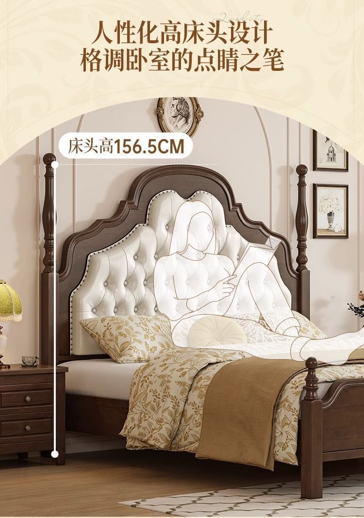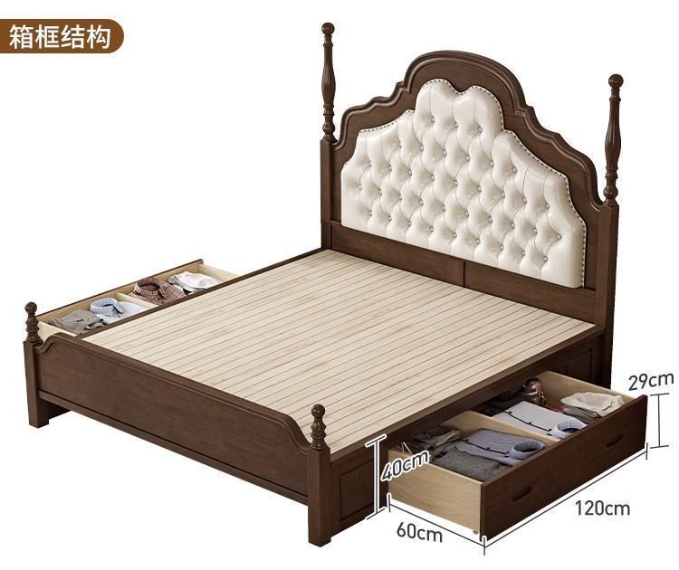 레트로 미국식 원목 침대 더블 심플 소프트 박스 침대 옆 안나 침대 라이트 럭셔리 프렌치 소형 원목 침대 웨딩 침대