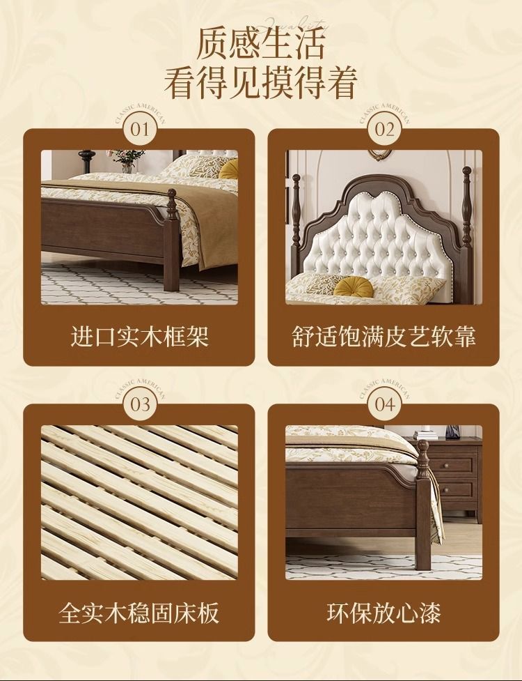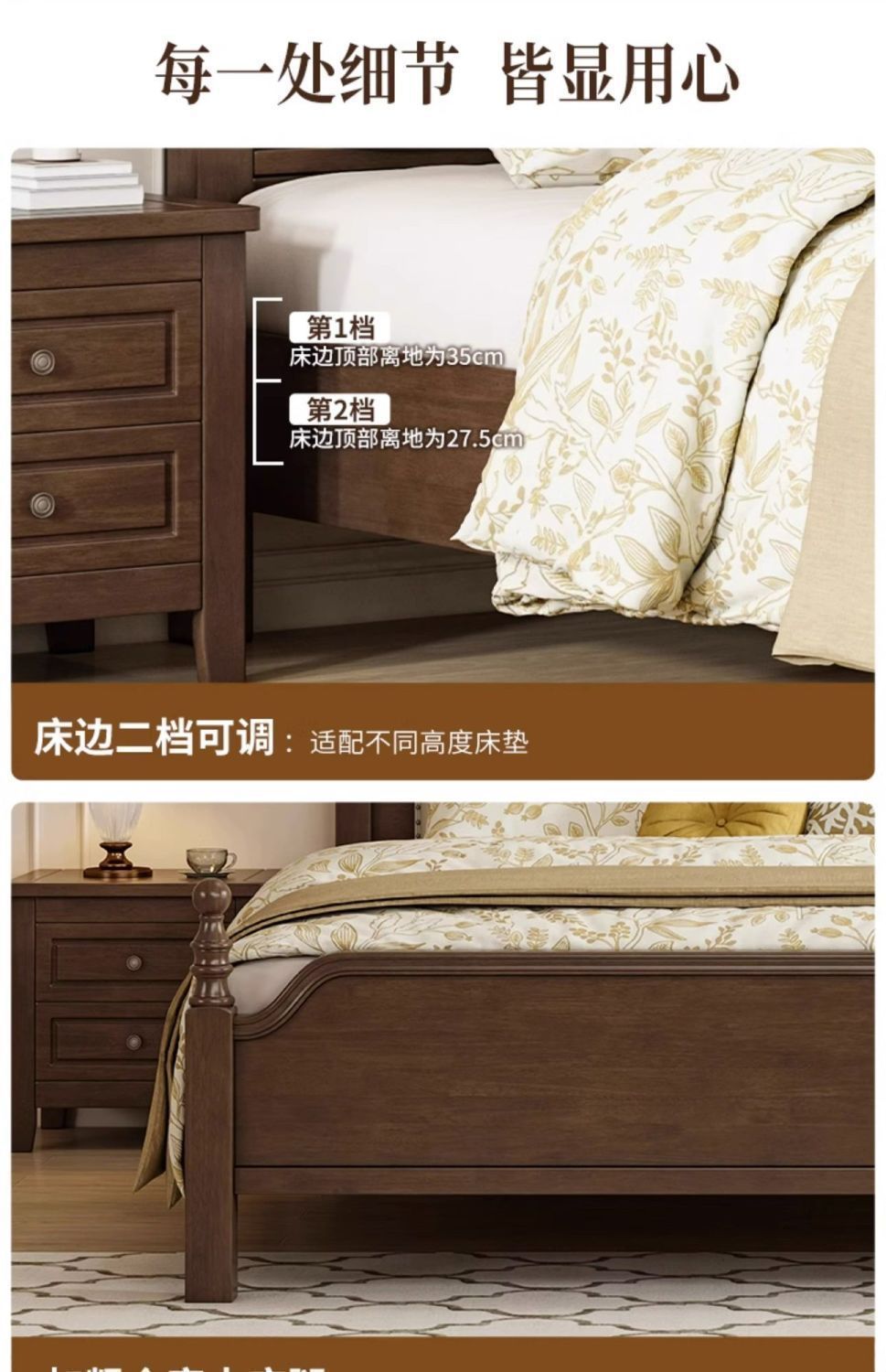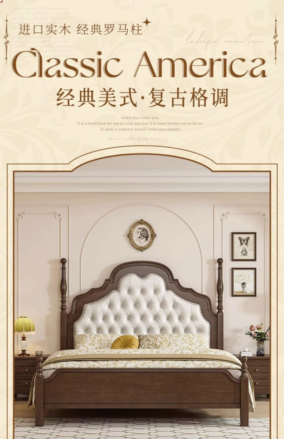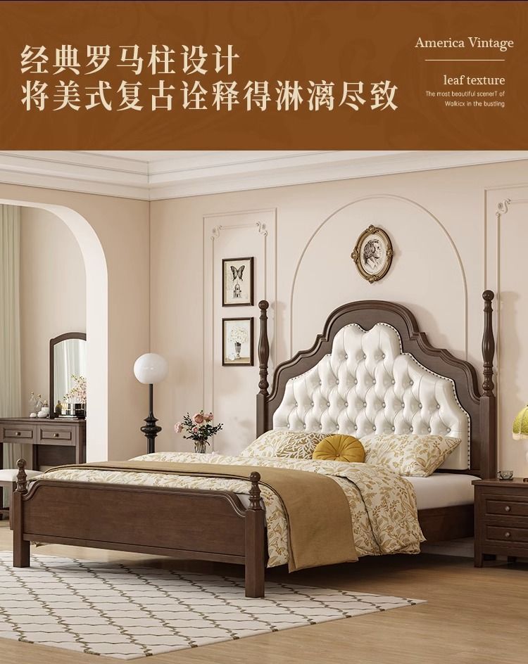 레트로 미국식 원목 침대 더블 심플 소프트 박스 침대 옆 안나 침대 라이트 럭셔리 프렌치 소형 원목 침대 웨딩 침대스토어 가기