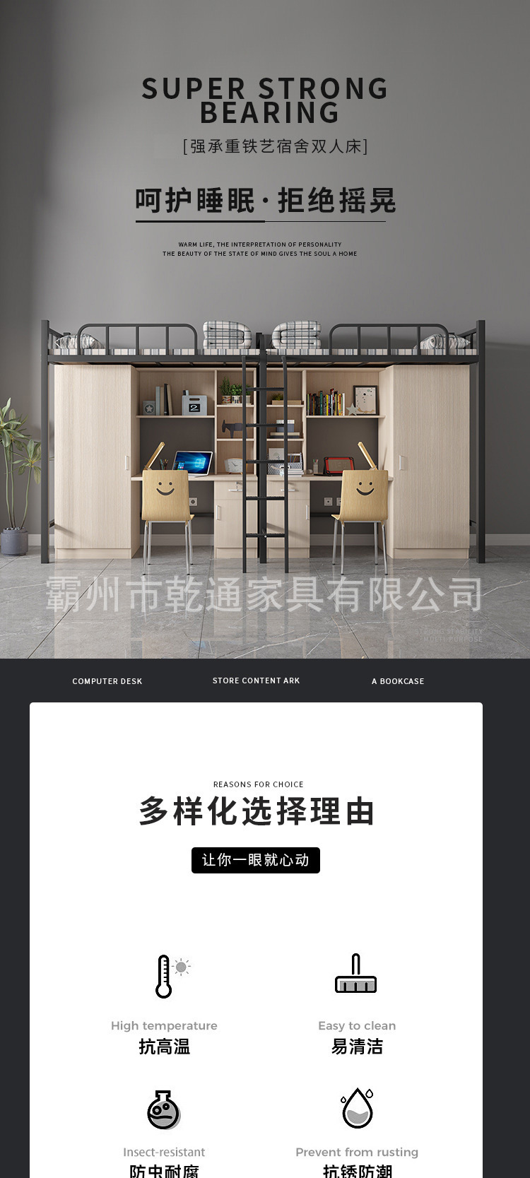 대학생을 위한 맞춤형 침대와 책상, 직원 기숙사 아파트 침대, 철제 침대, 옷장과 책상이 결합된 통합형 로프트 침대스토어 가기