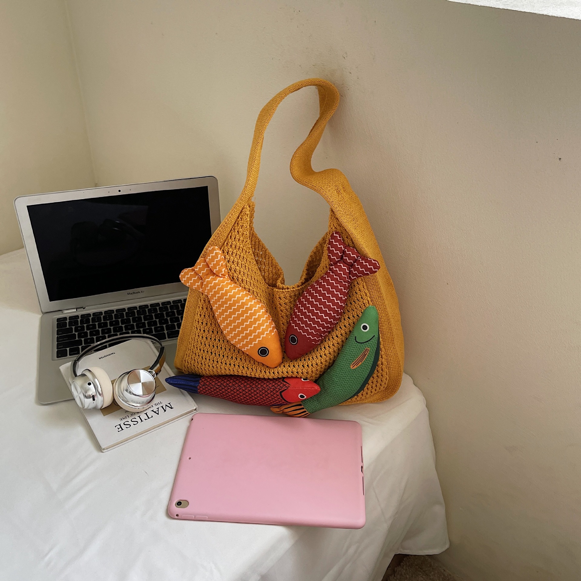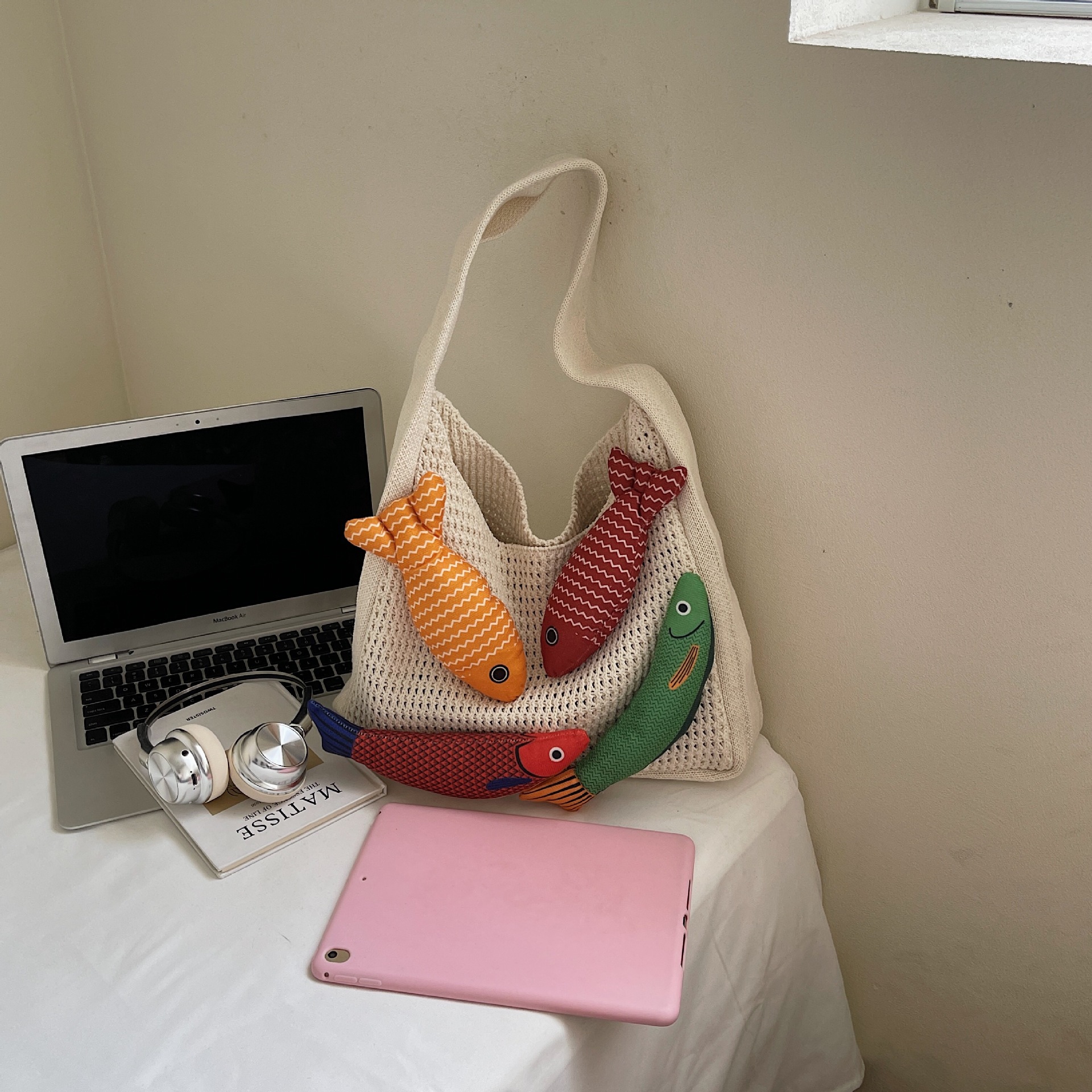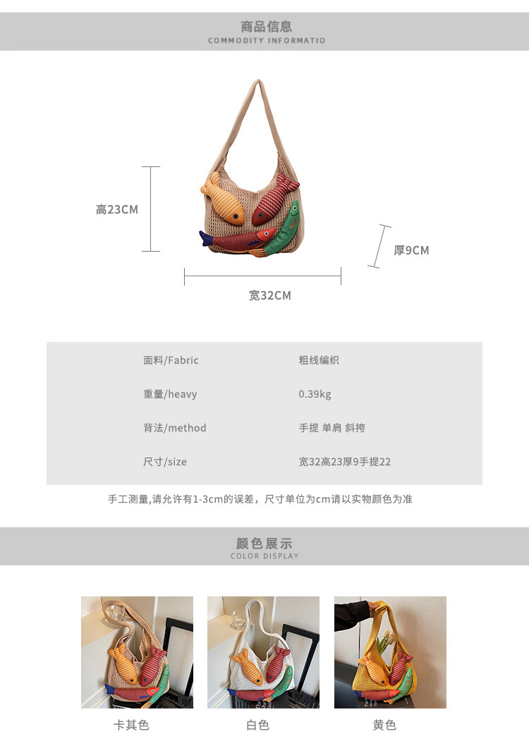 2025년 여름 신작 틈새 복고풍 트렌디한 태슬 스플라이싱 예술적 니트 백 대비 컬러 숄더백 토트백스토어 가기