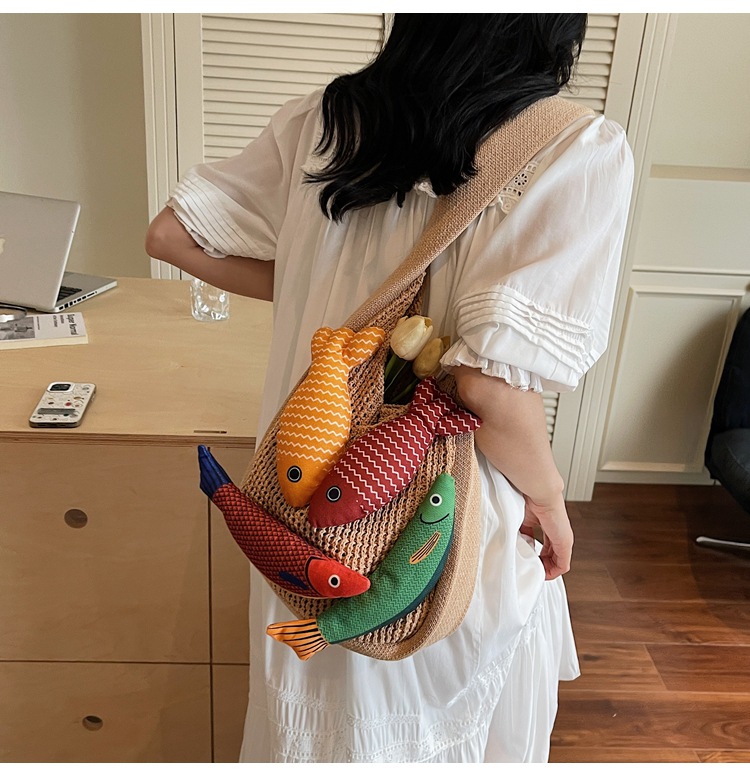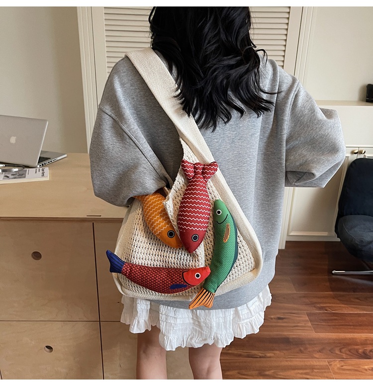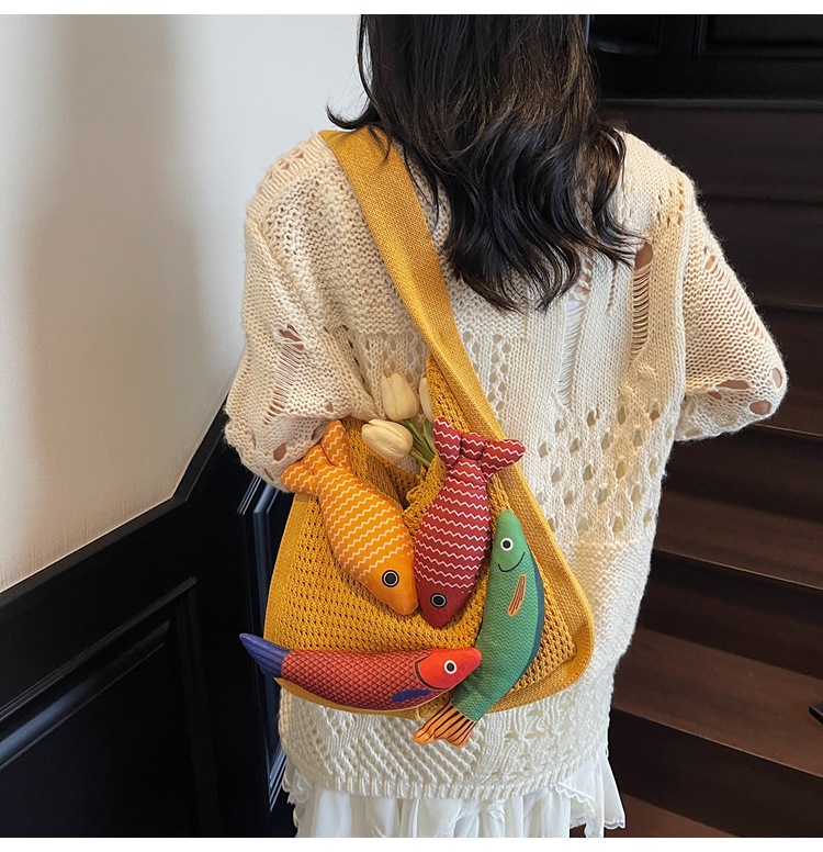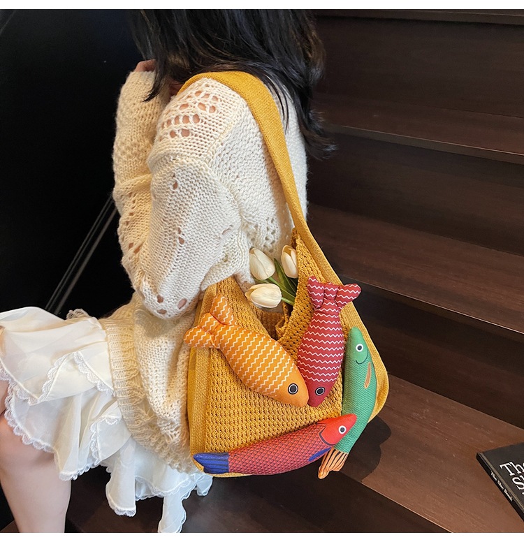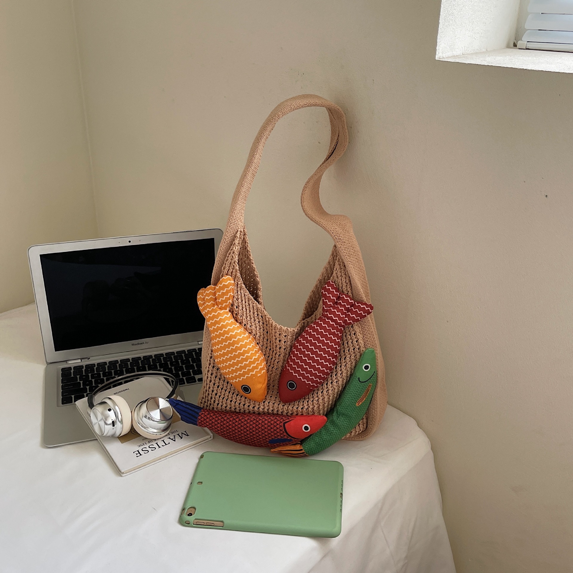 2025년 여름 신작 틈새 복고풍 트렌디한 태슬 스플라이싱 예술적 니트 백 대비 컬러 숄더백 토트백스토어 가기
