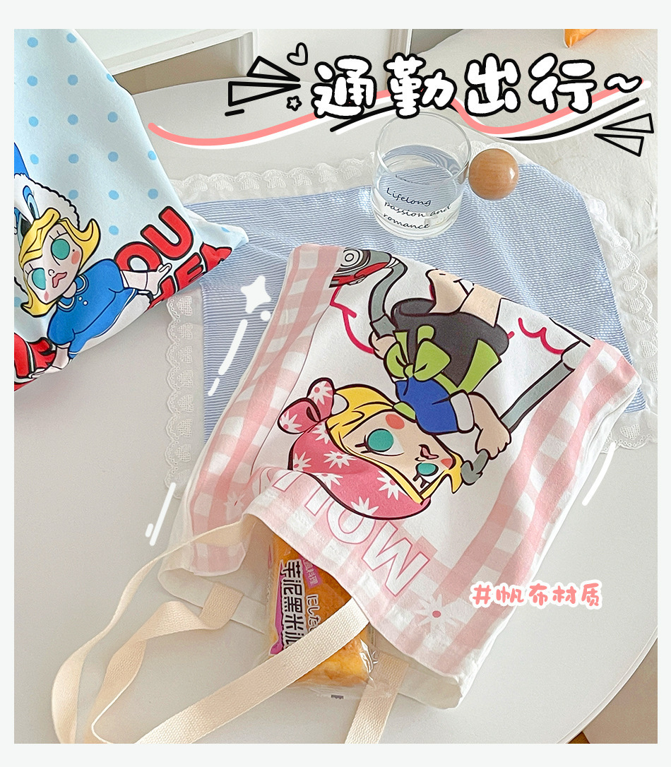 몰리 주변 캔버스 가방 여성 귀여운 만화 고급스러운 대용량 학생 통근 휴대용 숄더백