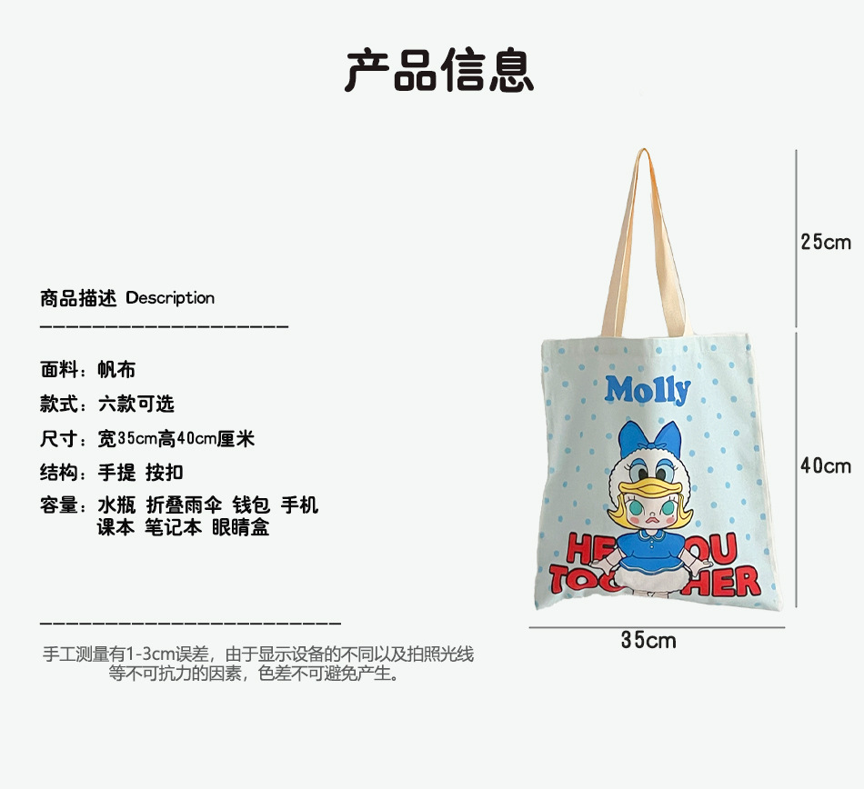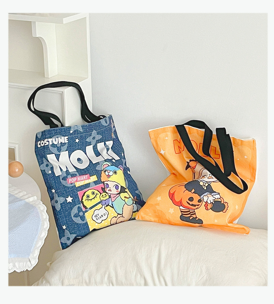 몰리 주변 캔버스 가방 여성 귀여운 만화 고급스러운 대용량 학생 통근 휴대용 숄더백스토어 가기