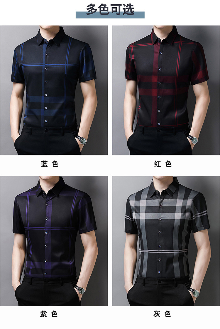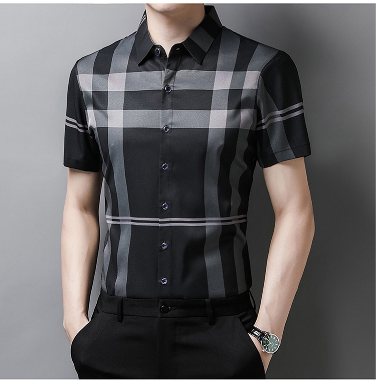 여름 슬림핏 남성 반팔 셔츠 2025 스트라이프 청년 및 중년 라펠 얇은 패션 캐주얼 셔츠 남성 트렌디스토어 가기