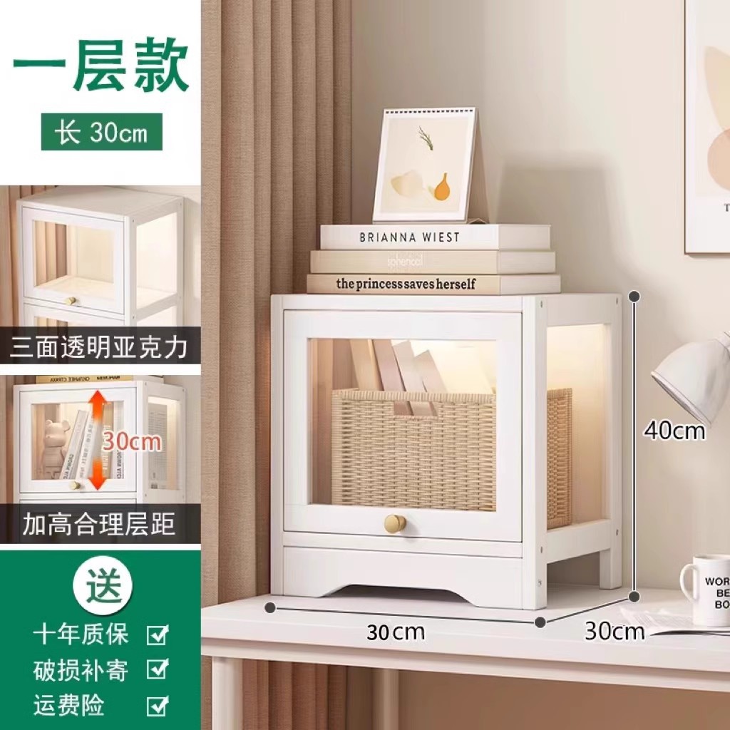 • ️잠금 장치로 업그레이드됨️[크림 화이트] 4겹 60CM [3면 투명 - 플립 도어 방진]