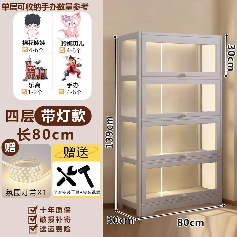 • 조명으로 업그레이드 [크림화이트] 4단 80CM [3면투명 - 플립도어 방진]