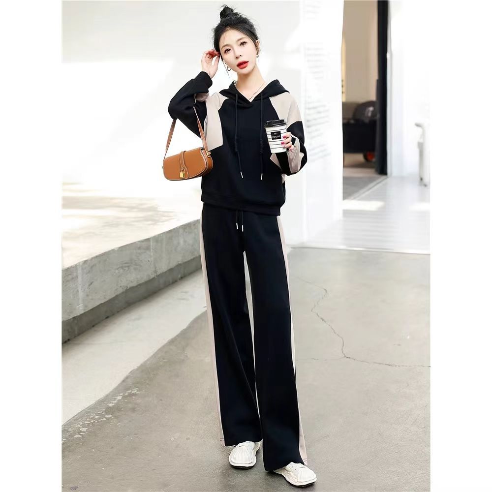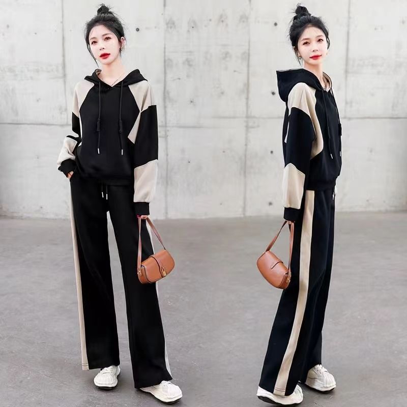 여성을위한 가을, 겨울 하이 엔드 브랜드 캐주얼 벨벳 스웨트 스포츠 정장 봄, 가을 2025 새로운 패션 투피스 세트스토어 가기
