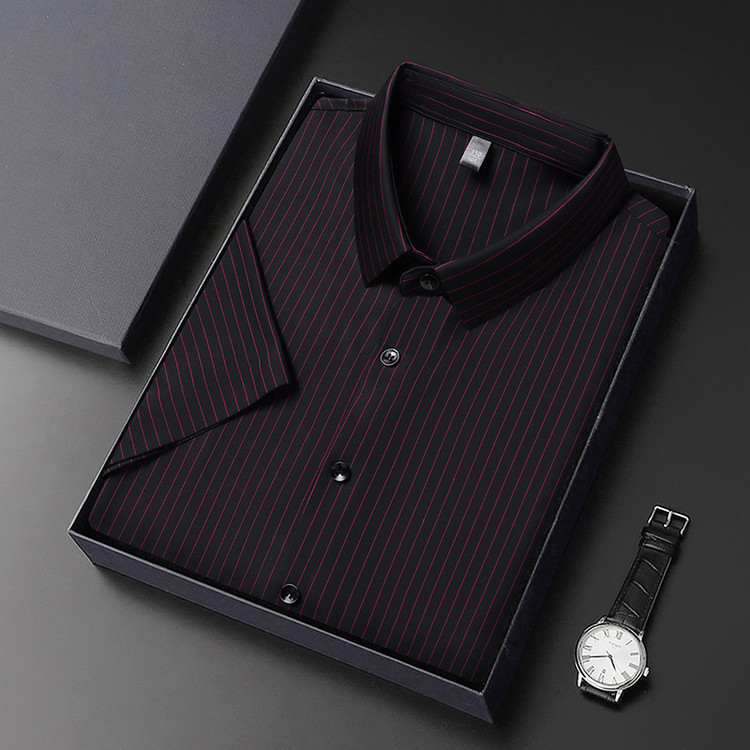2025 새로운 여름 남성 원활한 얼음 실크 반팔 셔츠 비즈니스 통기성 셔츠 트렌디 캐주얼 원피스 도매
