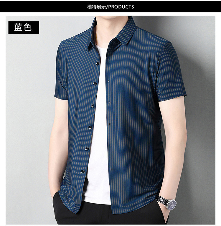 2025 새로운 여름 남성 원활한 얼음 실크 반팔 셔츠 비즈니스 통기성 셔츠 트렌디 캐주얼 원피스 도매스토어 가기