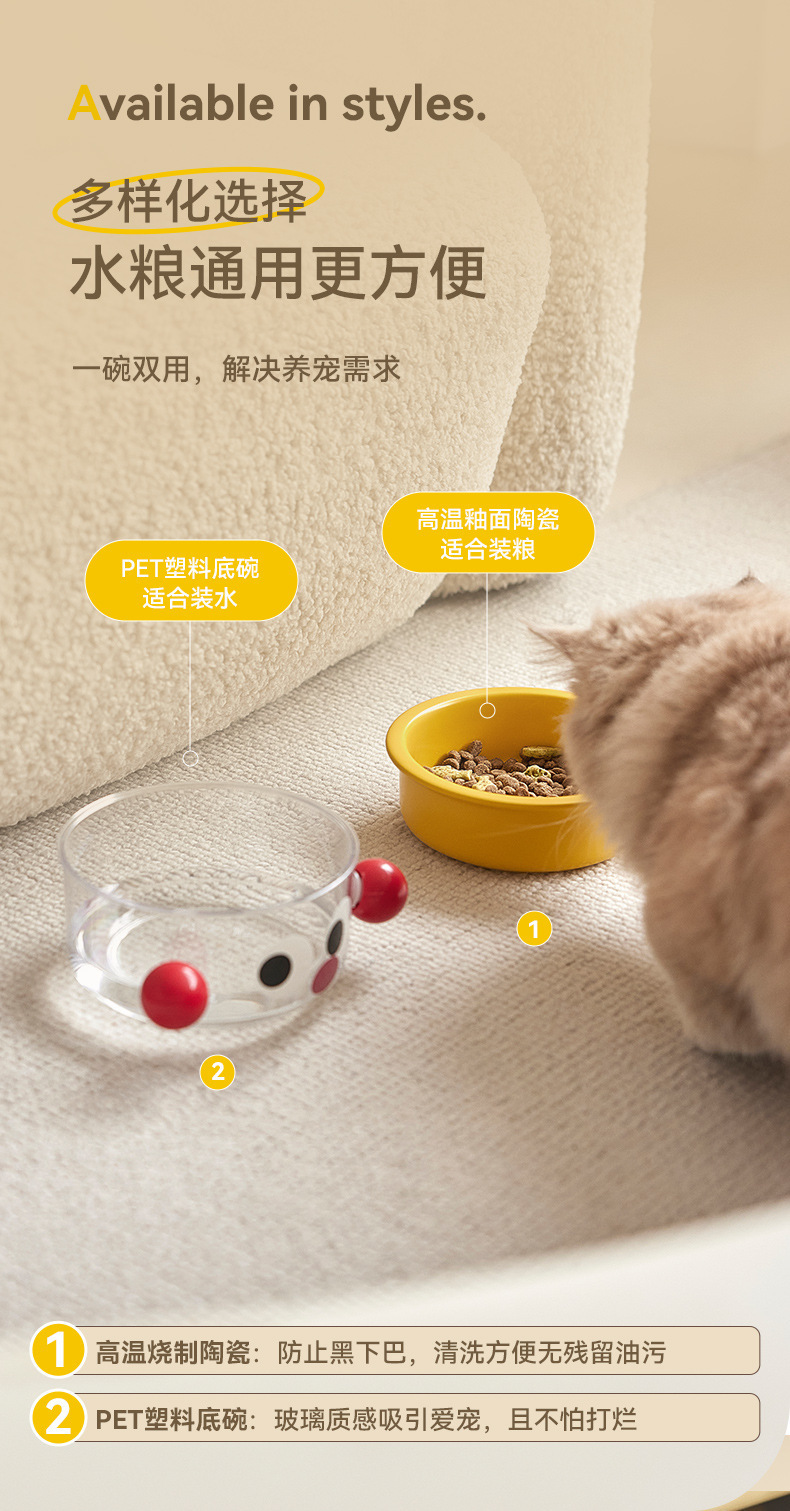 고양이 그릇 세라믹 그릇 이중층 고양이 먹고 마시는 그릇 고양이 먹이 그릇 뒤집히는 방지 대구경 개 그릇 재미있는 애완 동물 그릇스토어 가기