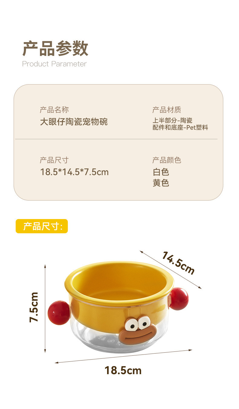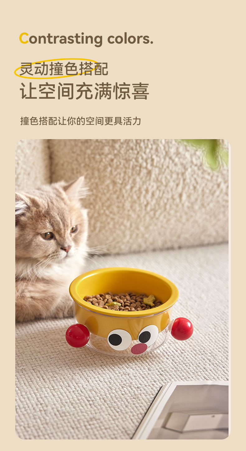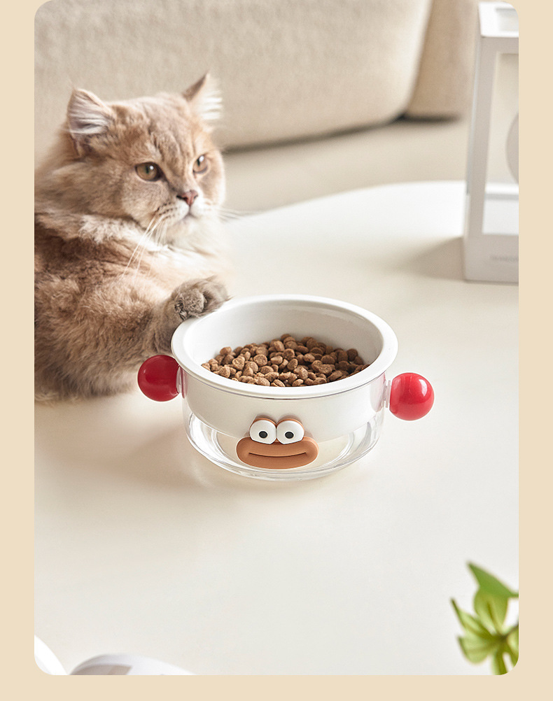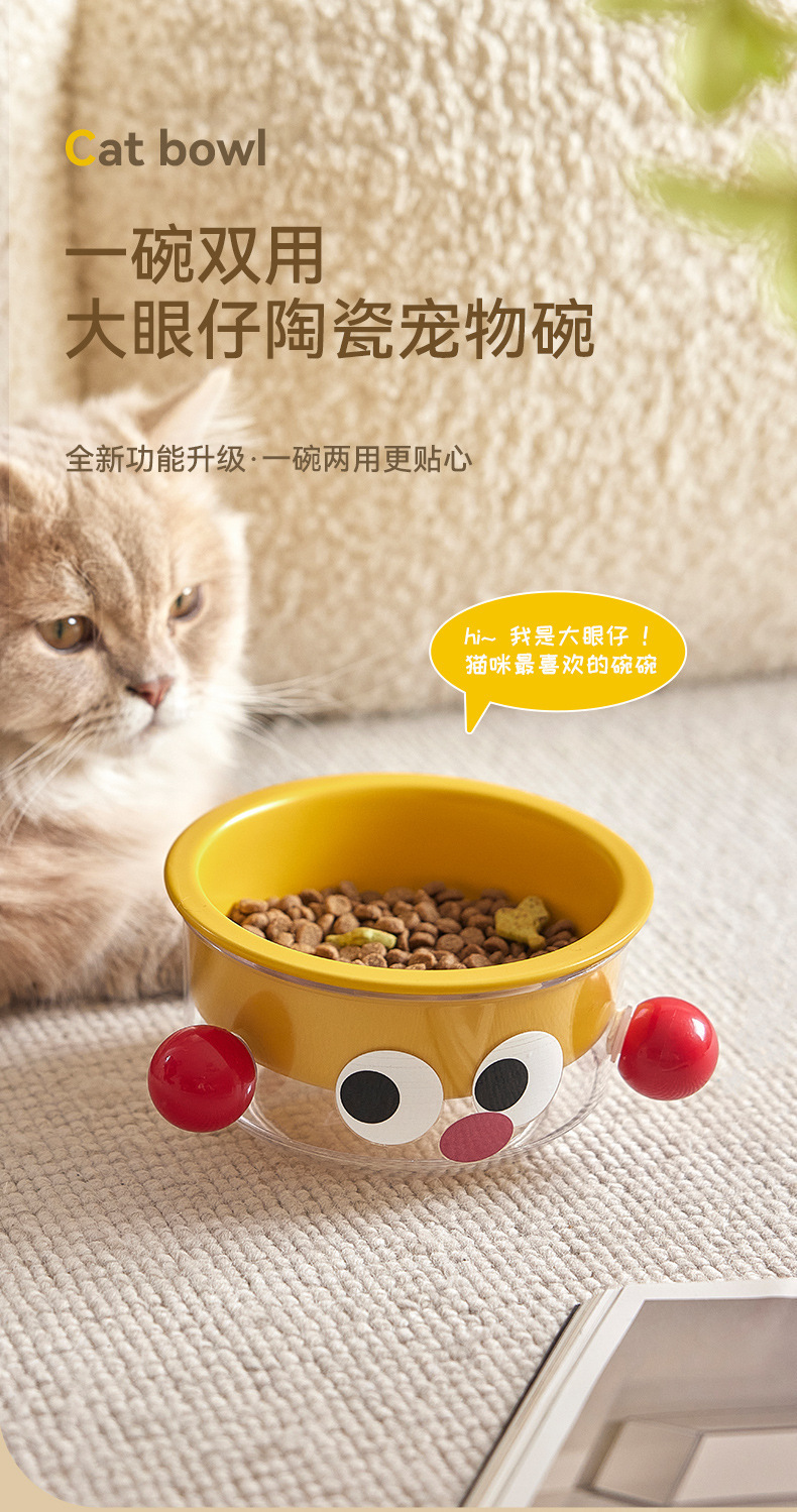 고양이 그릇 세라믹 그릇 이중층 고양이 먹고 마시는 그릇 고양이 먹이 그릇 뒤집히는 방지 대구경 개 그릇 재미있는 애완 동물 그릇