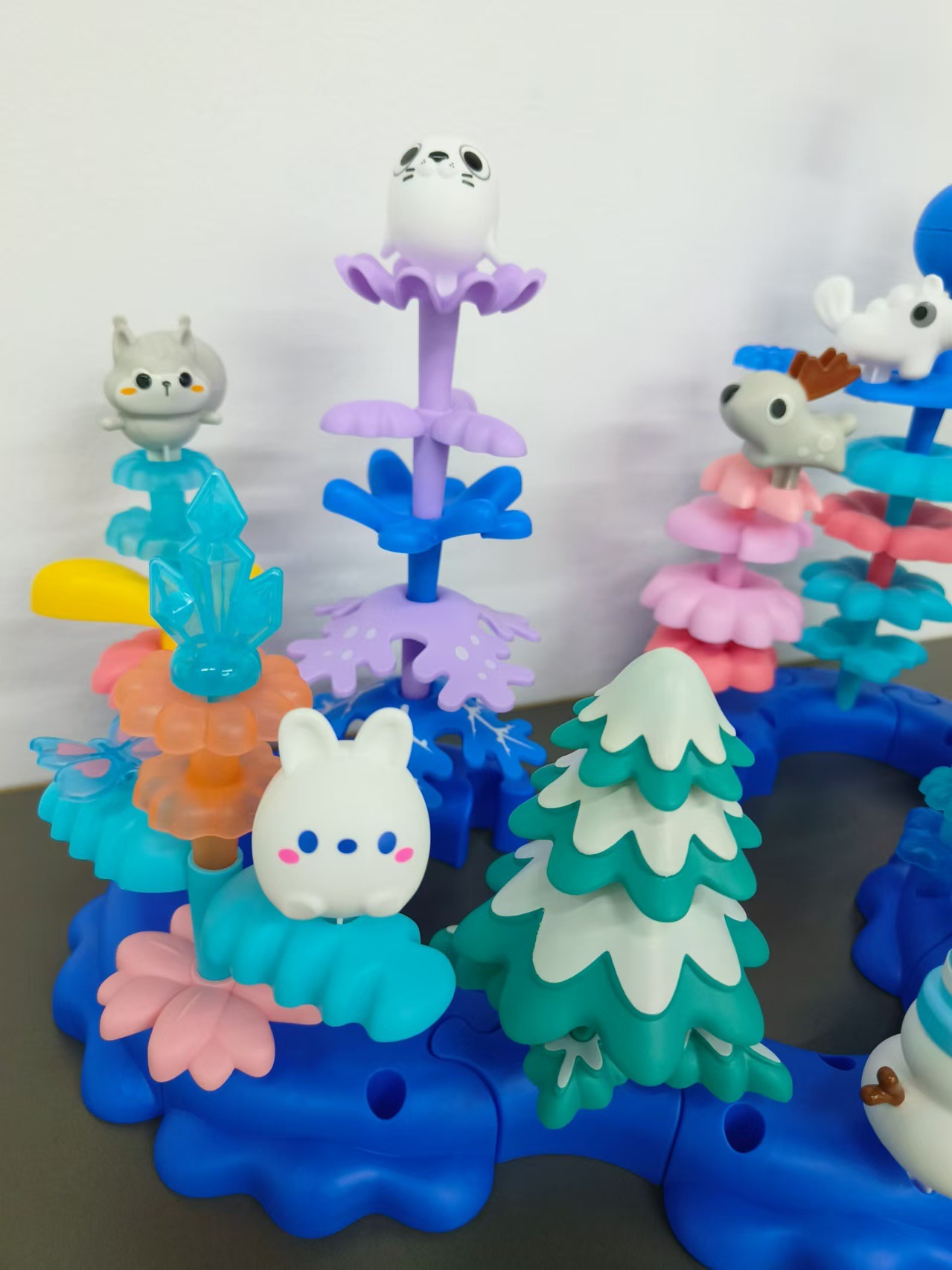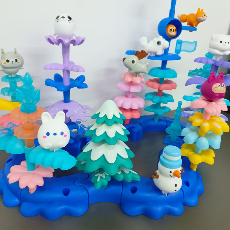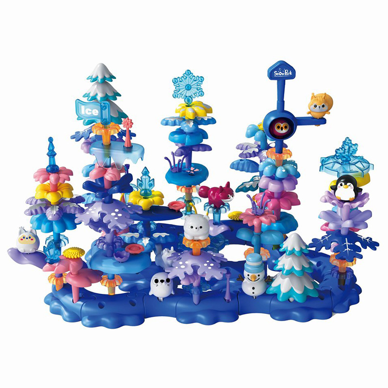 퍼즐 다양한 정원 얼음과 눈 빌딩 블록 어린이 조기 교육 DIY 조립 꽃꽂이 장난감 얼음과 눈 정원 136pcs
