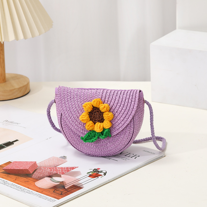 • 보라색 크로셰 이중 잎 해바라기 원형 히잡 백