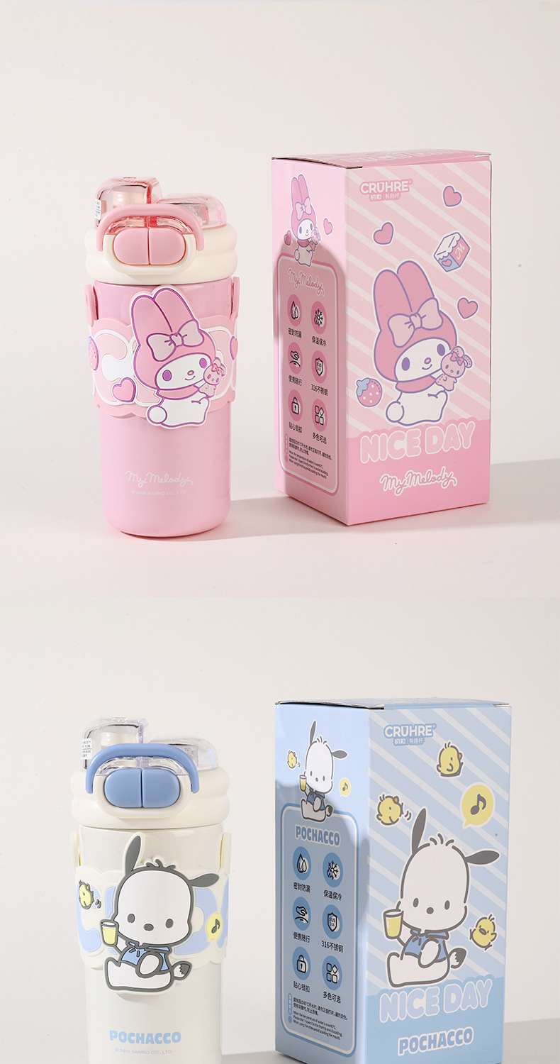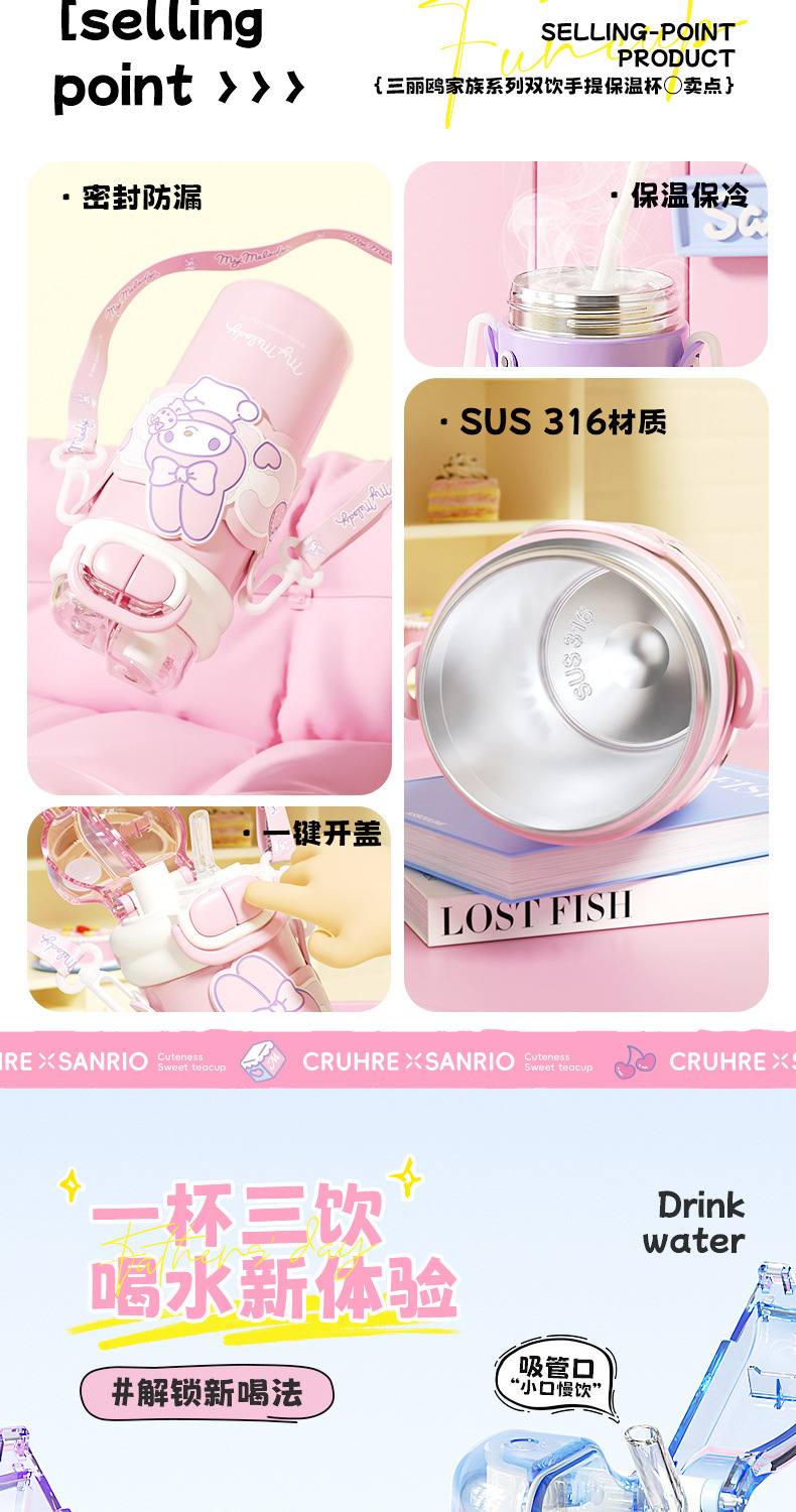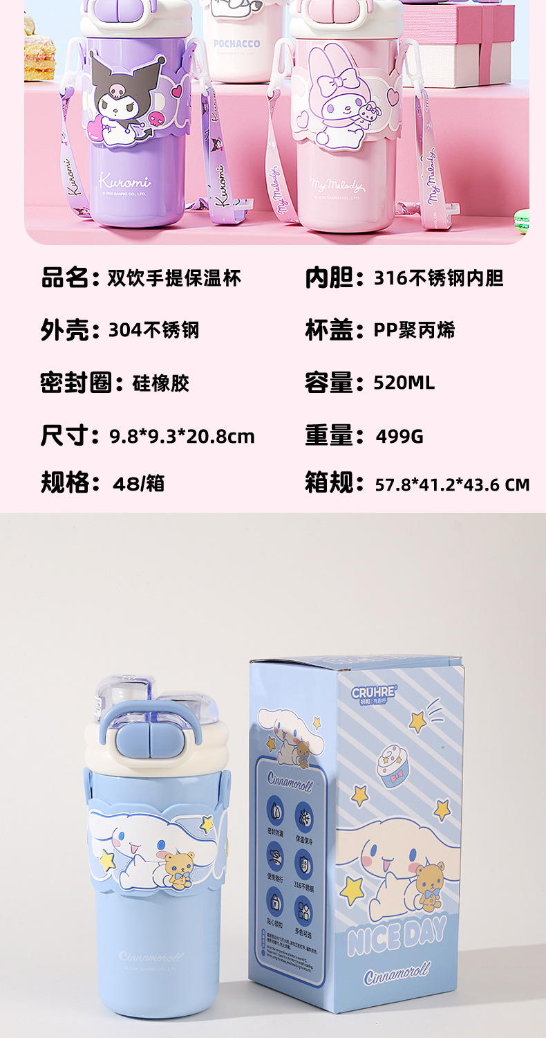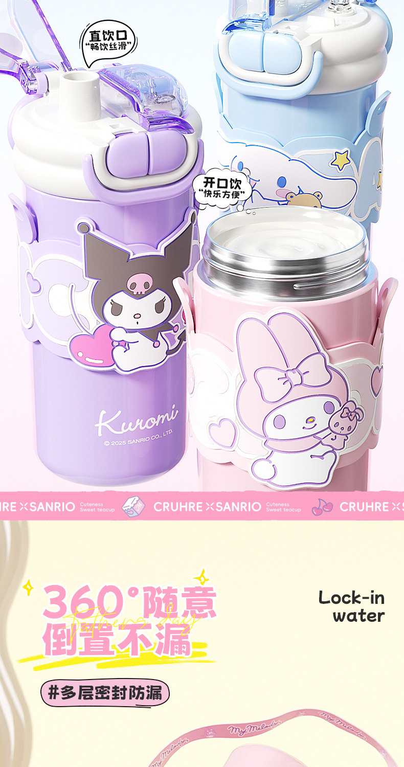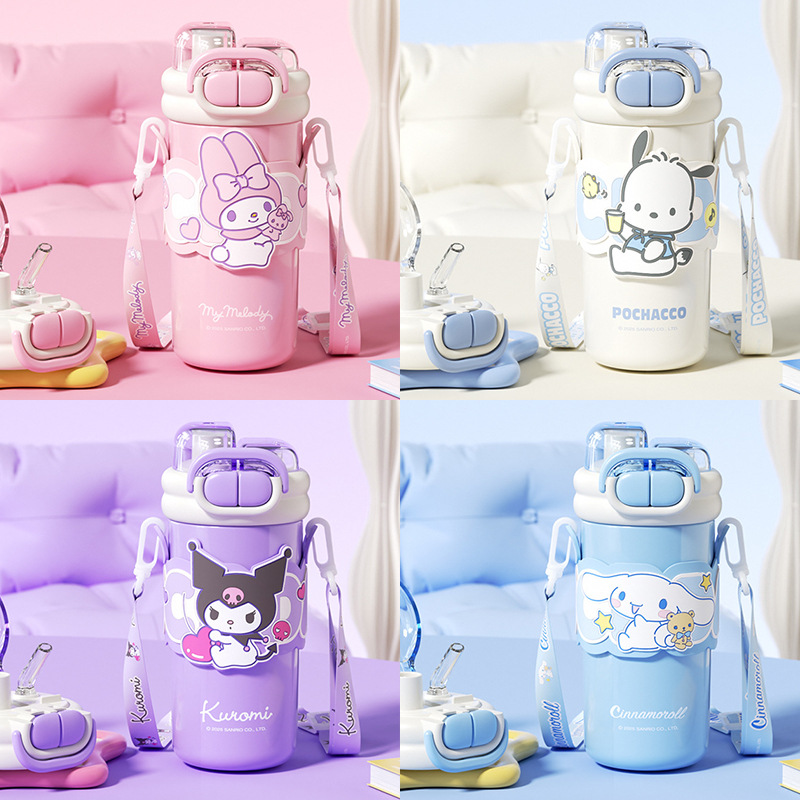 Sanrio 정품 공인 더블 드링크 휴대용 보온병 컵 2025 새로운 학교 사용 316 스테인레스 스틸 워터 컵