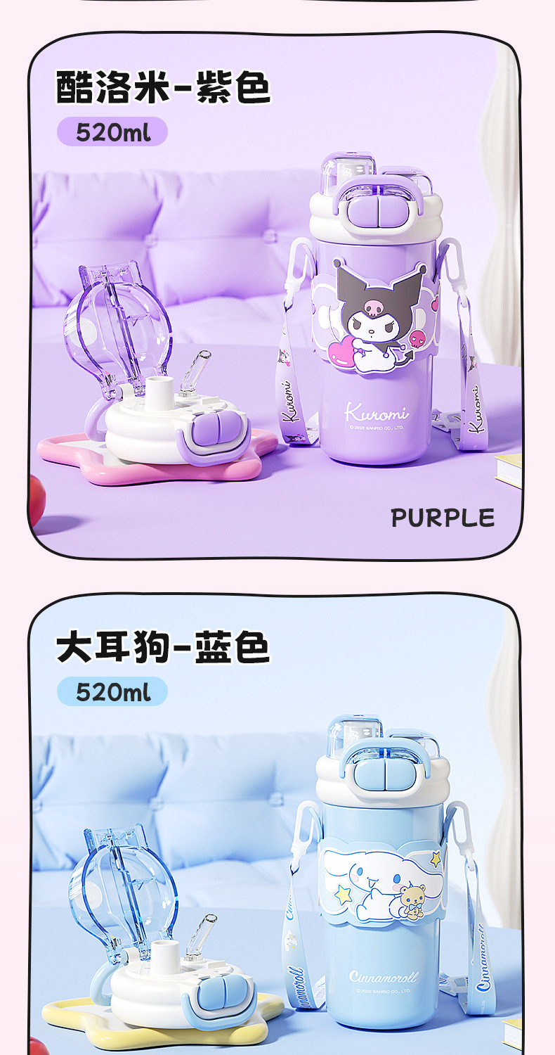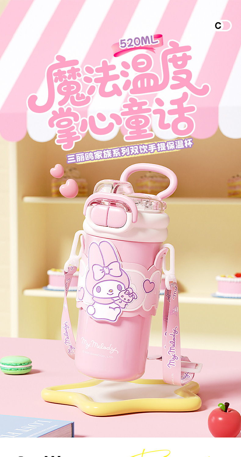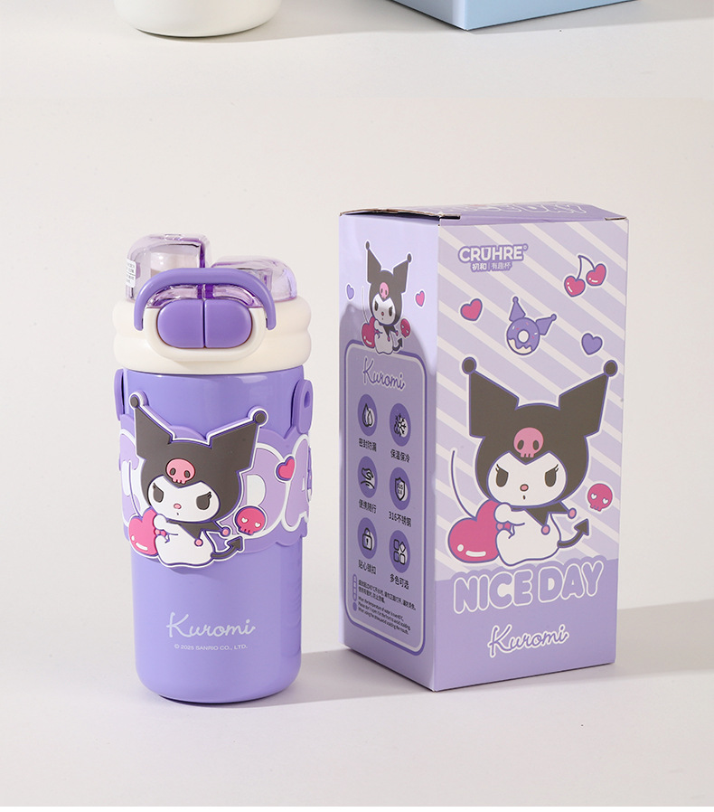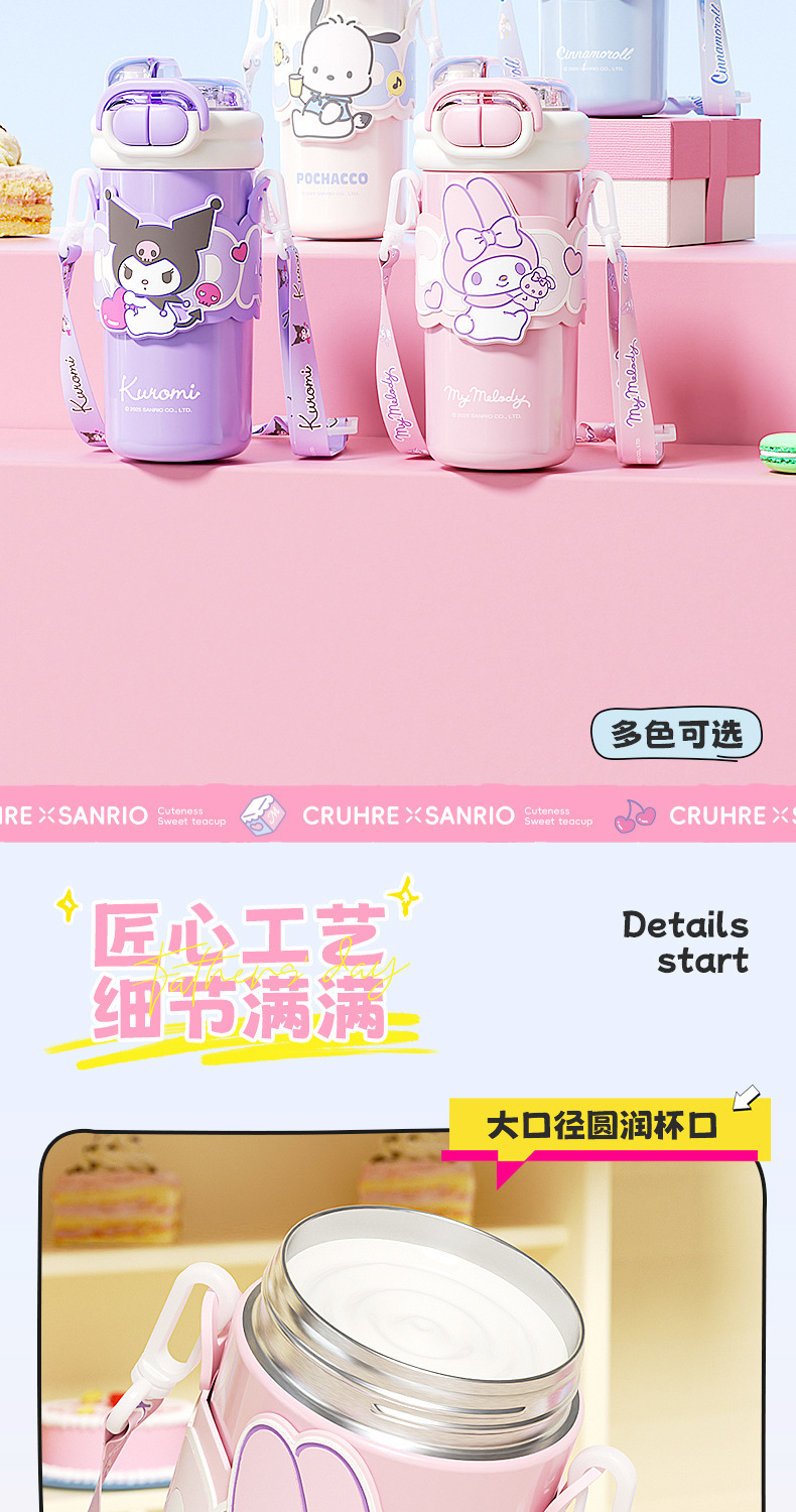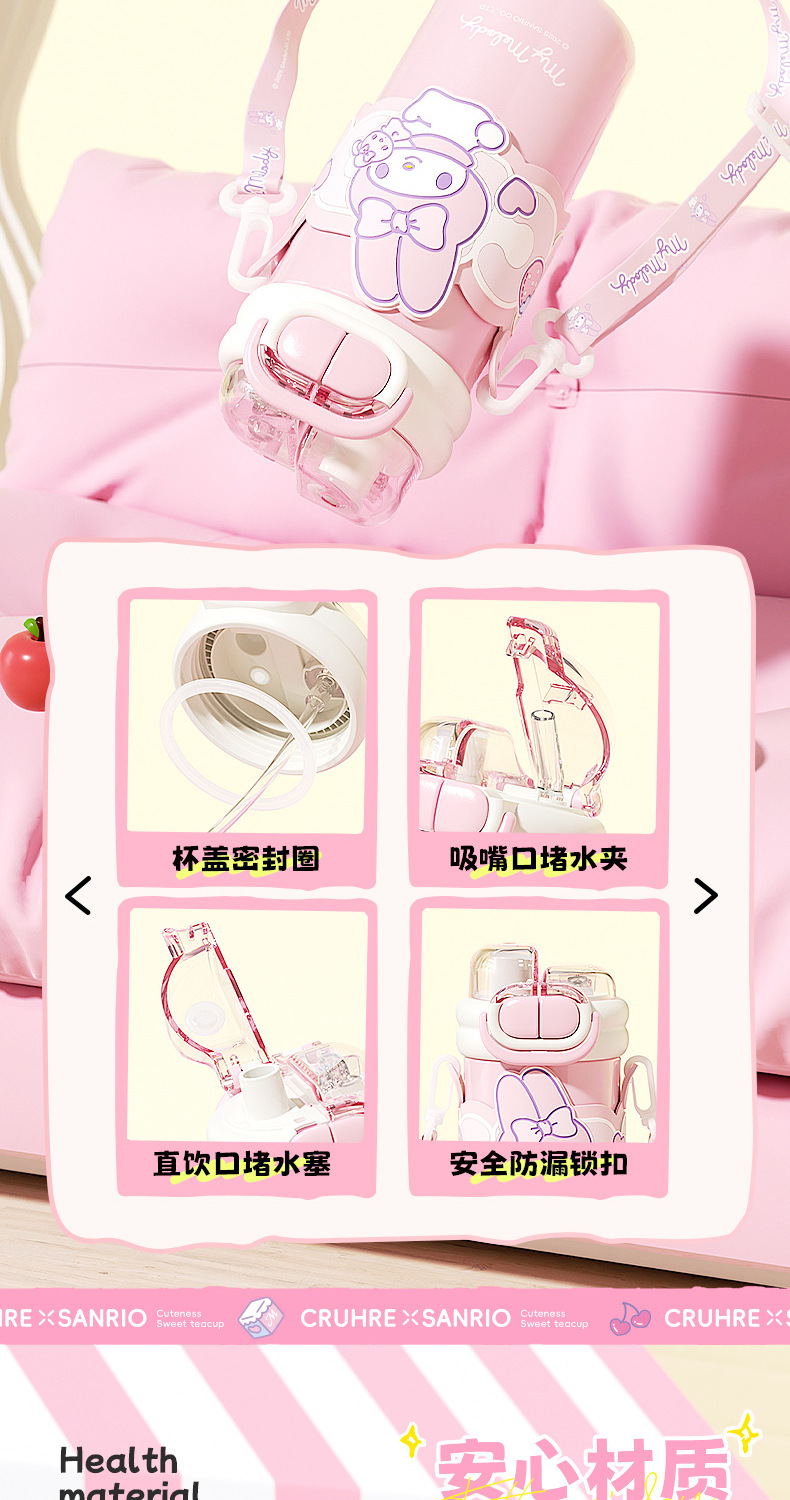 Sanrio 정품 공인 더블 드링크 휴대용 보온병 컵 2025 새로운 학교 사용 316 스테인레스 스틸 워터 컵